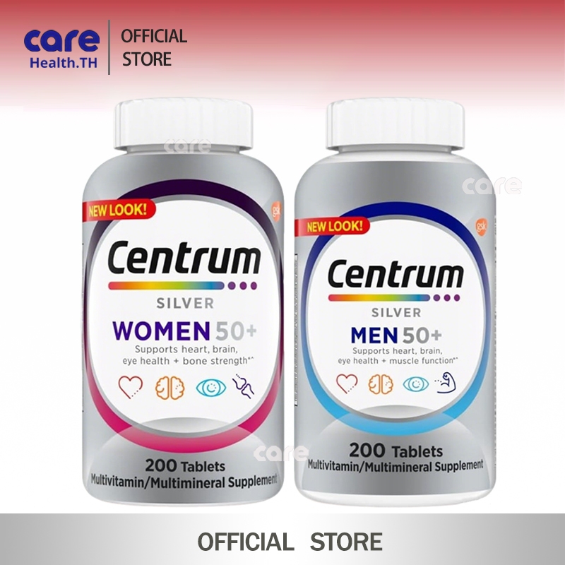 Centrum ซิลเวอร์ มัลติวิตามิน 200 เม็ด สำหรับผู้หญิง/ผู้ชาย พร้อมวิตามินดี 3 วิตามินบี และสังกะสี