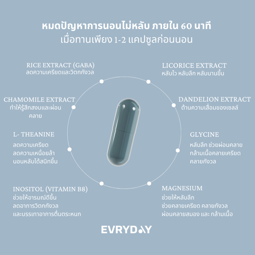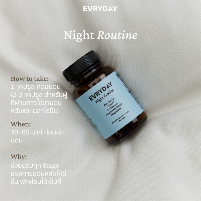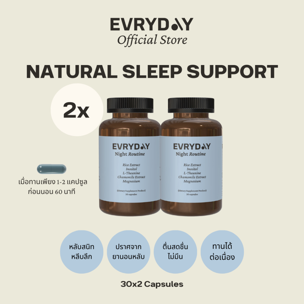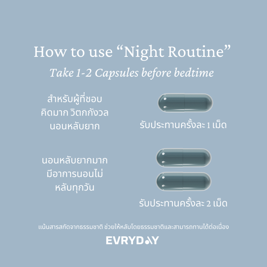 EVRYDAY Night routine x 2 | ไนท์รูทีน วิตามินช่วยหลับแบบธรรมชาติ หลับลึก หลับไว 2×30 แคปซูล