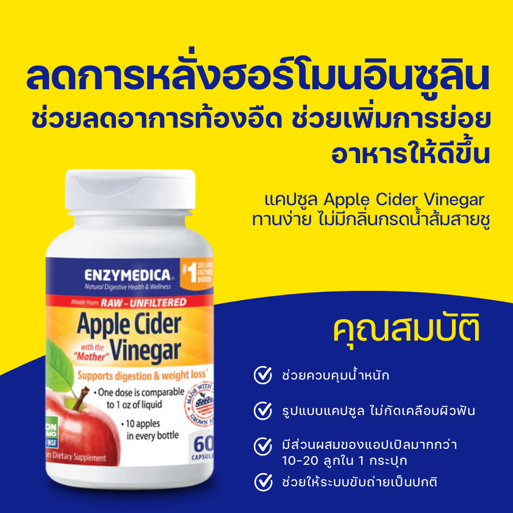 ENZYMEDICA Apple Cider Vinegar 💝 แอปเปิ้ลไซเดอร์ เวเนก้า ช่วยดีท๊อก ระบบย่อย และลดน้ำหนัก