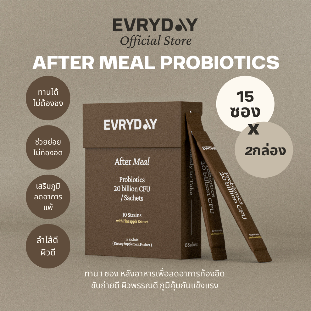 EVRYDAY Probiotics 20 Billion CFU 15 ซอง x 2 กล่อง ซอง จบมื้อไม่อืด ขับถ่ายดี สุขภาพผิวดี
