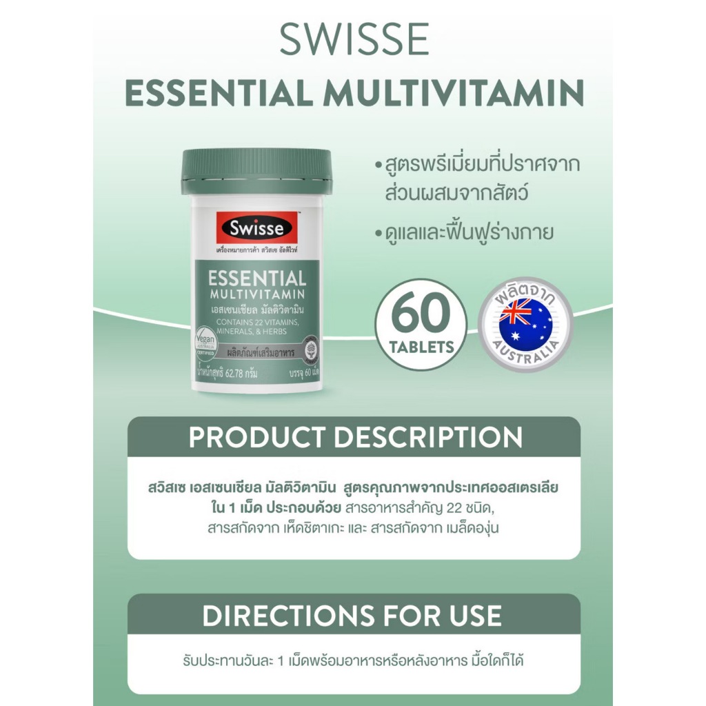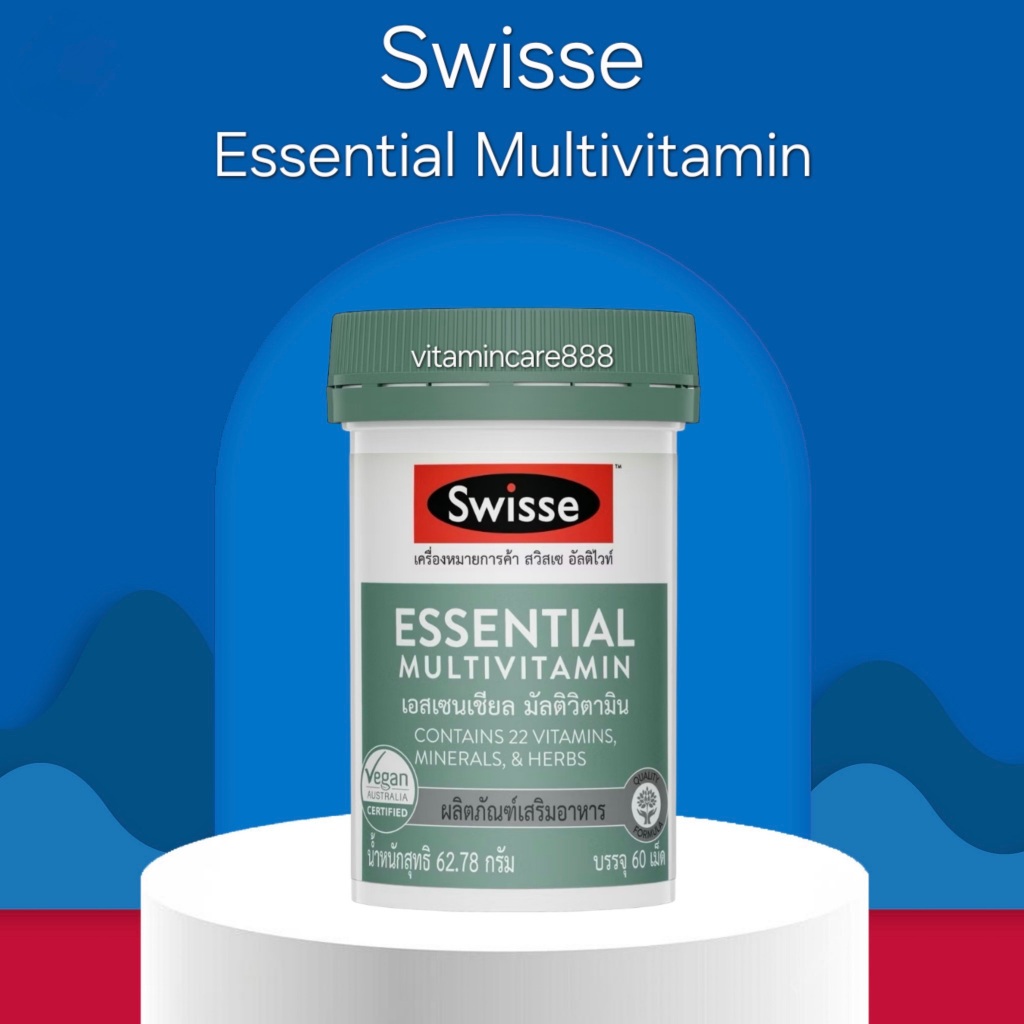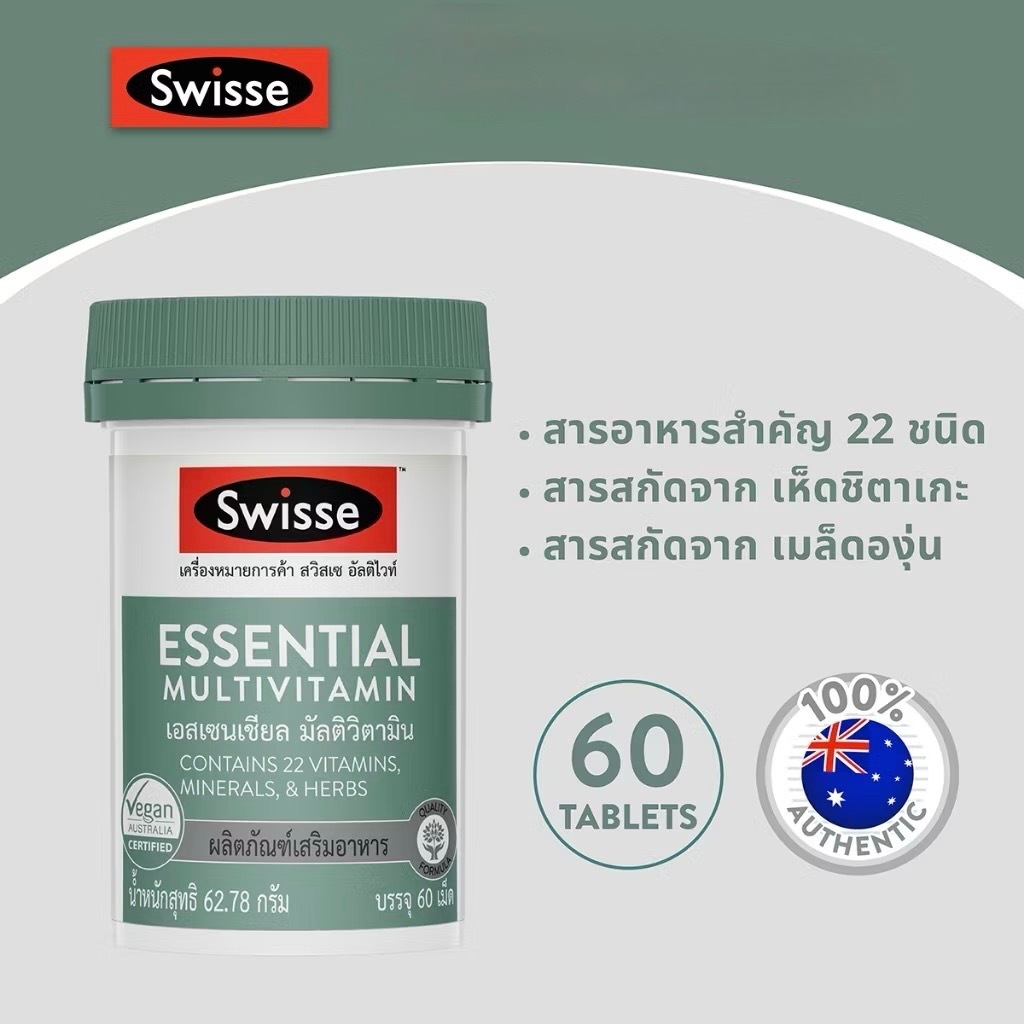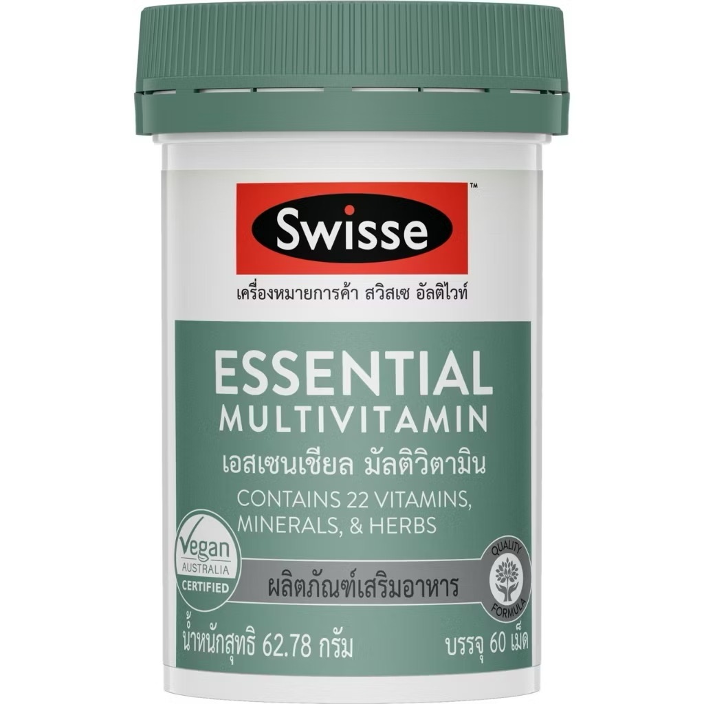 Exp.1/2027 (60 เม็ด) Swisse Essential Multivitamin สวิสเซ เอสเซนเชียล มัลติวิตามิน contains 22 vitamins, mineral, herbs