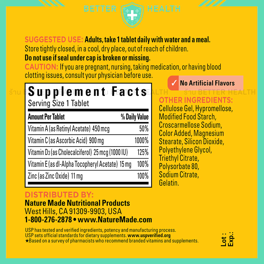 EXP:08/27 NATURE MADE Super C วิตามินซี ผสม วิตามินดี 3 และซิงก์ 200 เม็ด