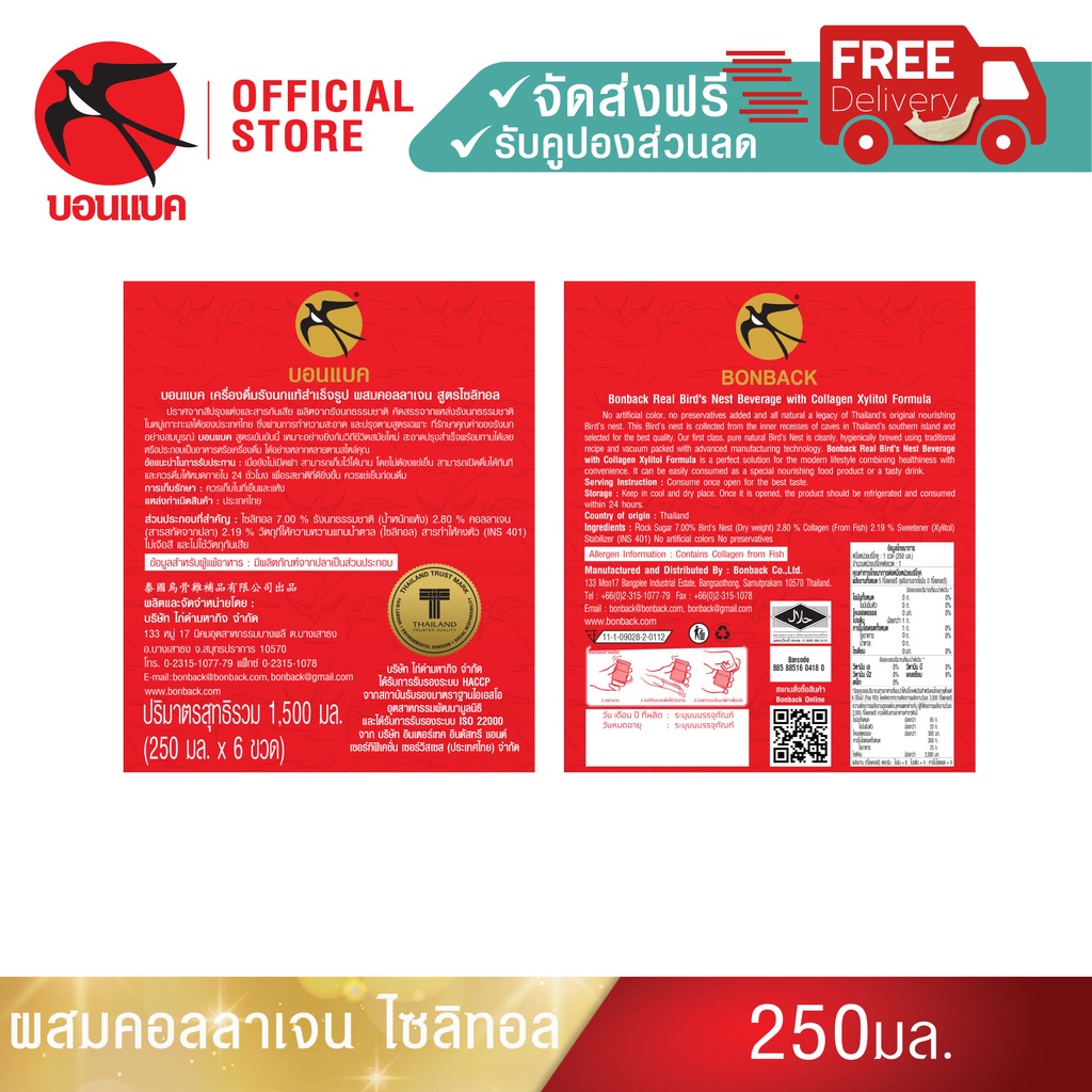 (ผสมคอลลาเจน สูตรไซลิทอล 250 มล. 3 แพค) บอนแบค ชุดเครื่องดื่มรังนกสำเร็จรูปผสมคอลลาเจน สูตรไซลิทอลBonback รังนกบอนแบค