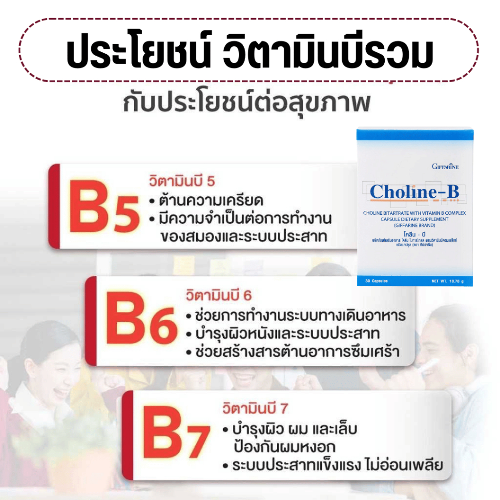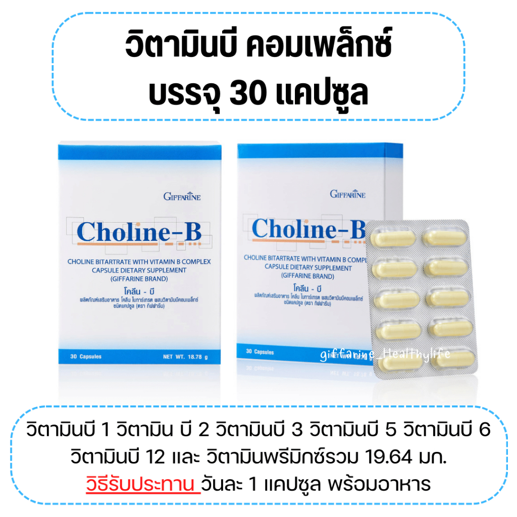 (ส่งฟรี) โคลีนบี กิฟฟารีน ผลิตภัณฑ์เสริมอาหาร โคลีน ไบทาร์เทรต ผสมวิตามินบีคอมเพล็กซ์ ชนิดแคปซูล Choline-B GIFFARINE