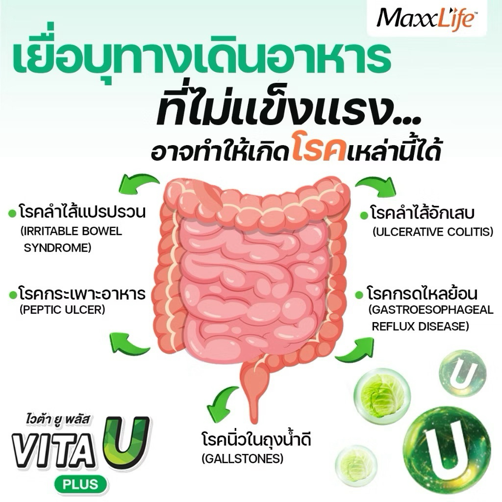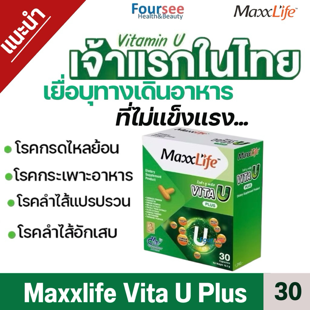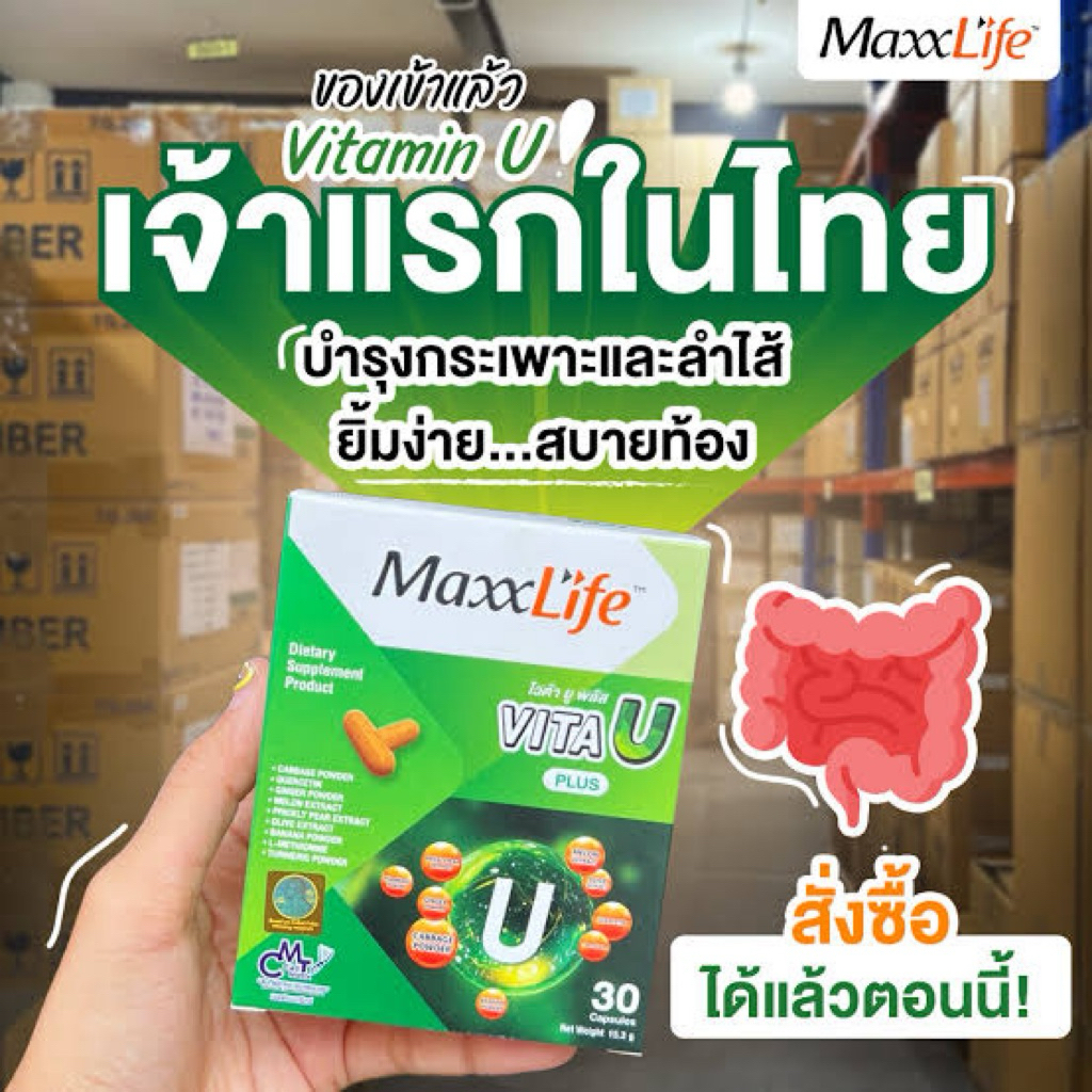 (ส่งด่วน ส่งฟรี) New✅Maxxlife Vita U Plus วิตามินเพื่อกระเพาะและ ลำไส้ (30 แคปซูล)