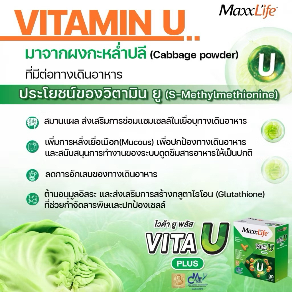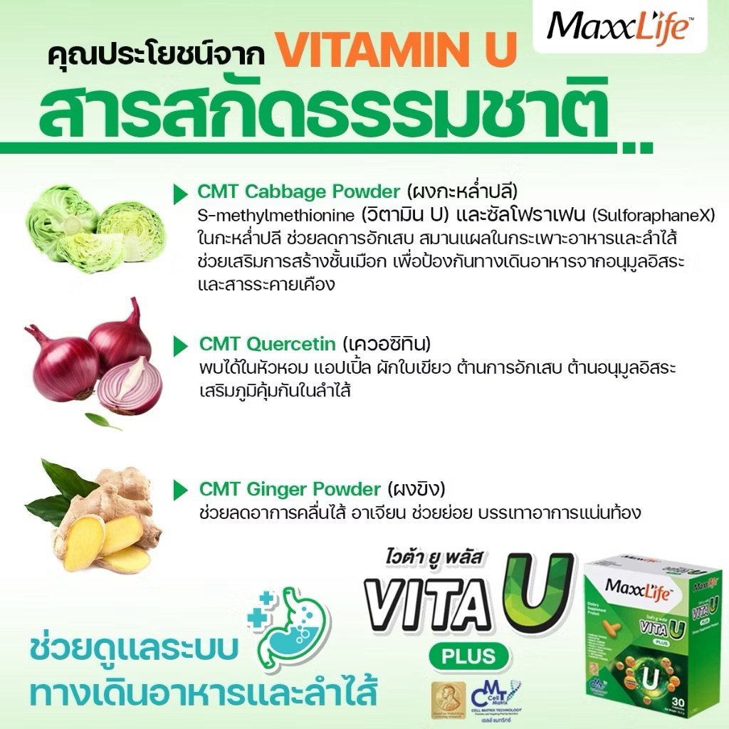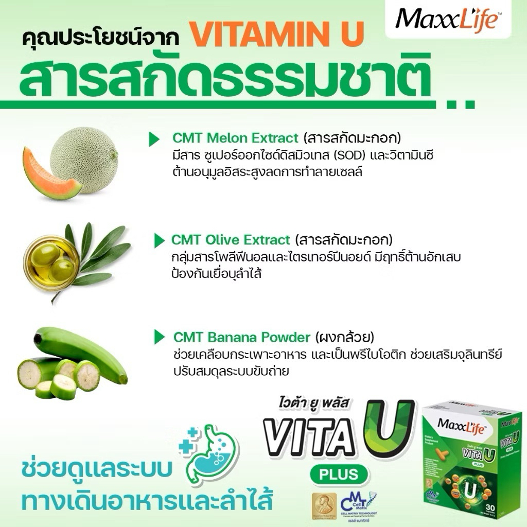 (ส่งด่วน ส่งฟรี) New✅Maxxlife Vita U Plus วิตามินเพื่อกระเพาะและ ลำไส้ (30 แคปซูล)