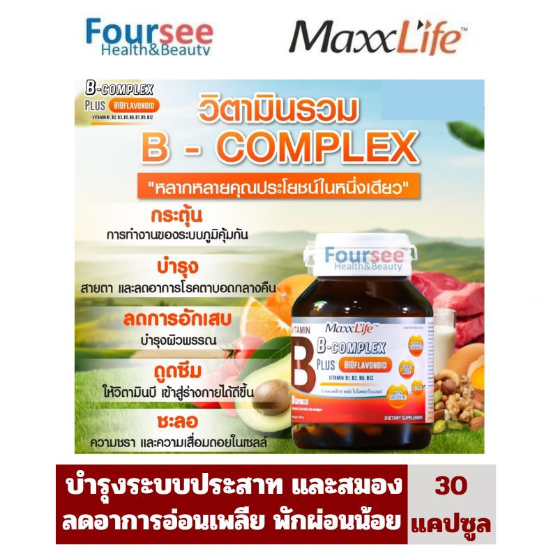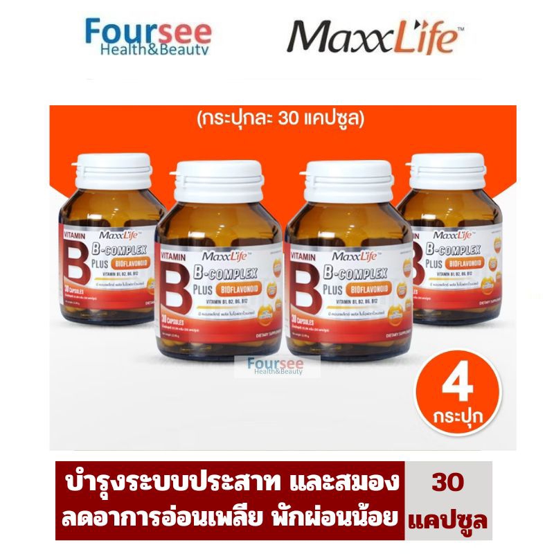 (ส่งด่วน ส่งฟรี)📌Set 4 เดือน Maxxlife วิตามินบีรวม B -complex plus BIOFLAVONOID 30 แคปซูล