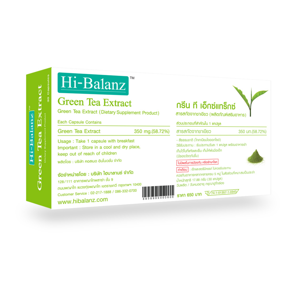 [ผลิตภัณฑ์ดูแลผิว] Hi-Balanz Green Tea Extract สารสกัดจากชาเขียว 2 กล่อง รวม 60 แคปซูล