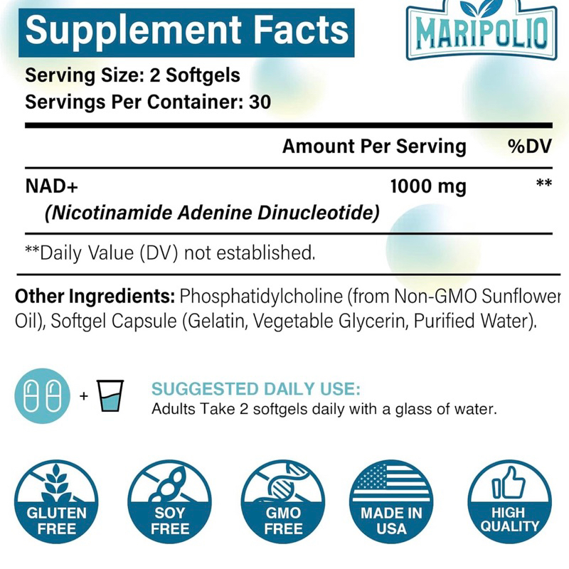 [ของแท้ 100% + พร้อมส่ง] 💖😘 Liposomal NAD+ 1000 mg 60 เม็ดซอฟเจล