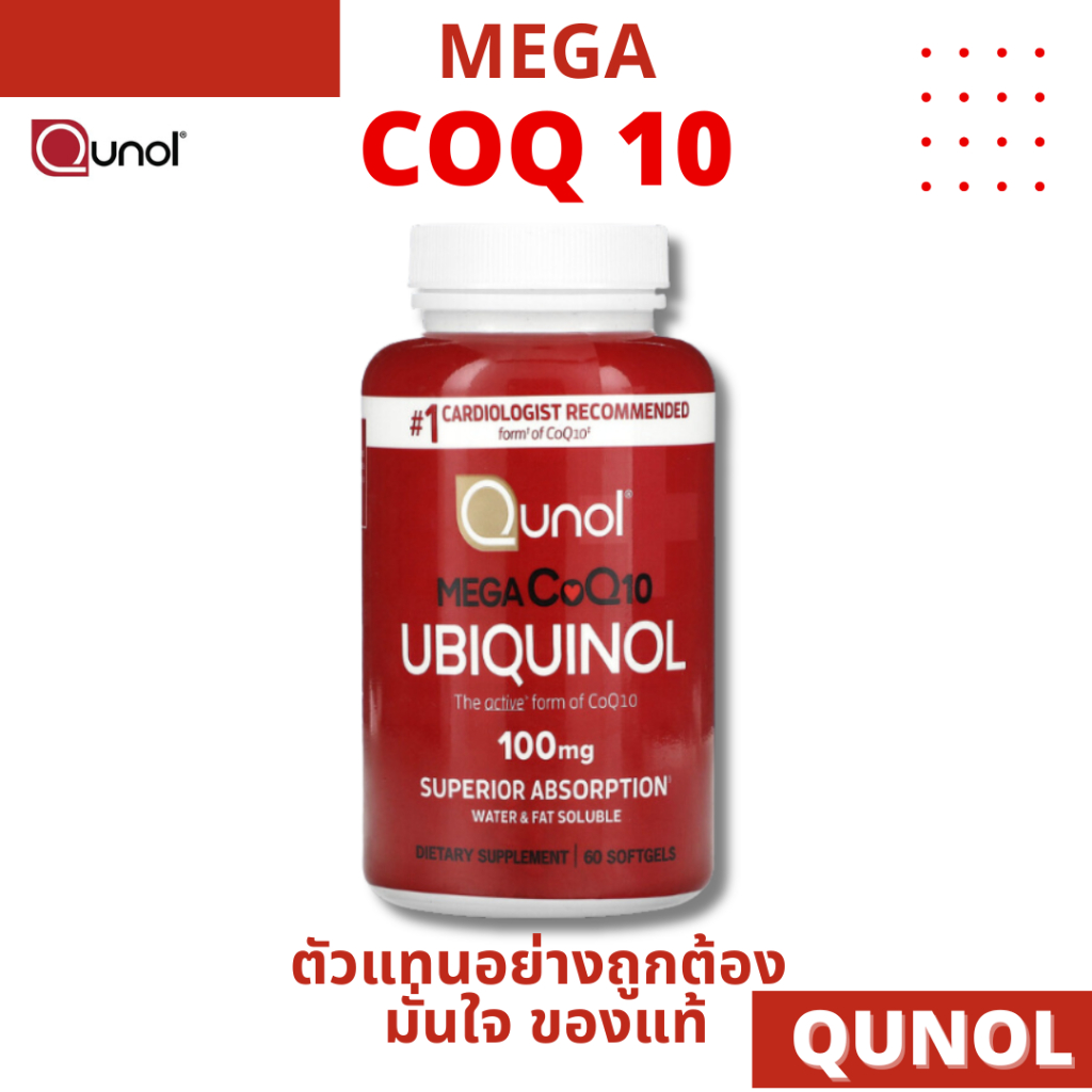 [ของแท้สั่งตรง] Qunol Mega CoQ10 Ubiquinol โคเอ็นไซ คิวเท็น 100 mg 60/120 Softgels exp 12/2027