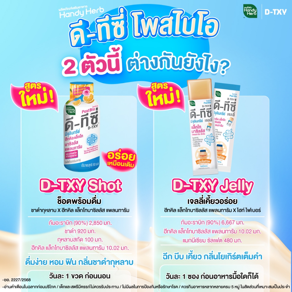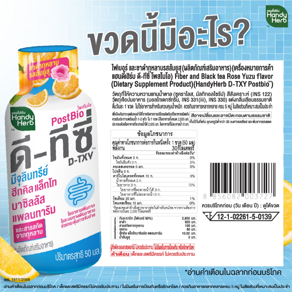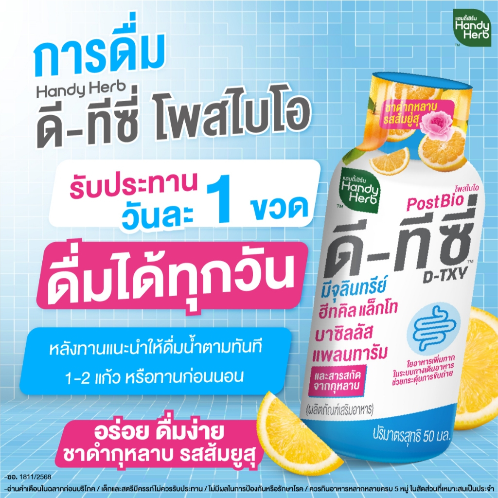 [ฉลากใหม่] HandyHerb D-TXY PostBio แฮนดี้เฮิร์บ ดี-ทีซี่ โพสไบโอ ไฟเบอร์ และชาดำกุหลาบรสส้มยูสุ 2 แพ็ก (12 ขวด)