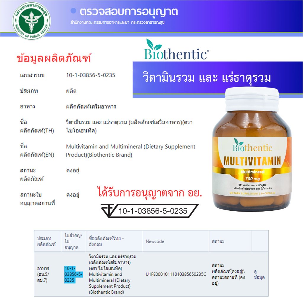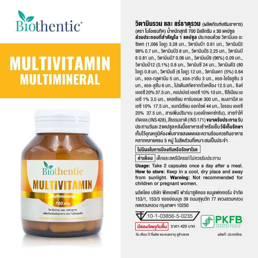 [ซื้อ 1 แถม 1] วิตามินรวม และ แร่ธาตุรวม ไบโอเธนทิค Multivitamin and Multimineral Biothentic Vitamin A B C D E K