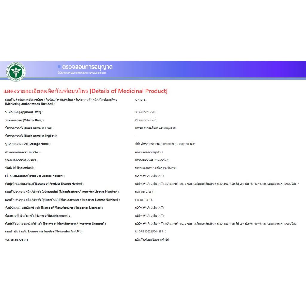 (PACK 6 ขวด) สมุนไพรวังพรม ยาหม่อง เสลดพังพอนขนาด 50 กรัม
