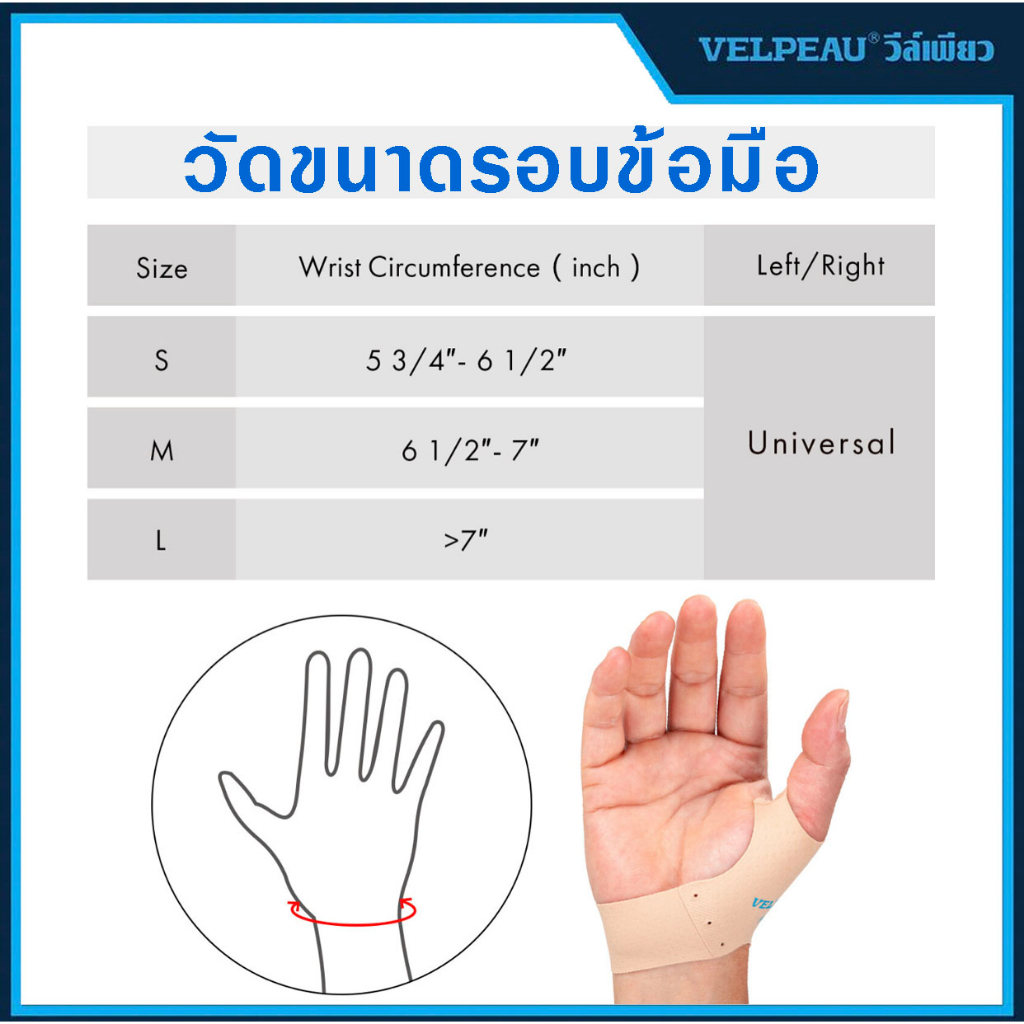 วีล์เพียว VELPEAU (VP0908) 1 คู่ บรรเทาอาการปวดนิ้วหัวแม่มือ ข้อมือ นิ้วล็อค นิ้วล๊อค นิ้วโป้ง อุ้งนิ้วโป้ง ปวดอุ้งนิ้ว
