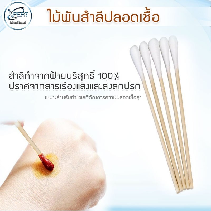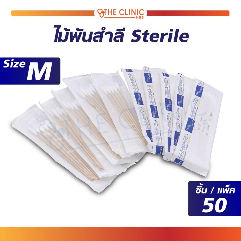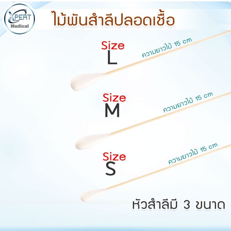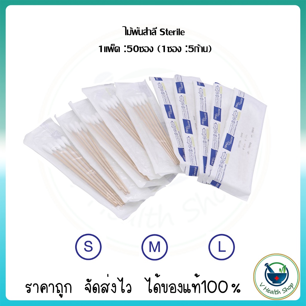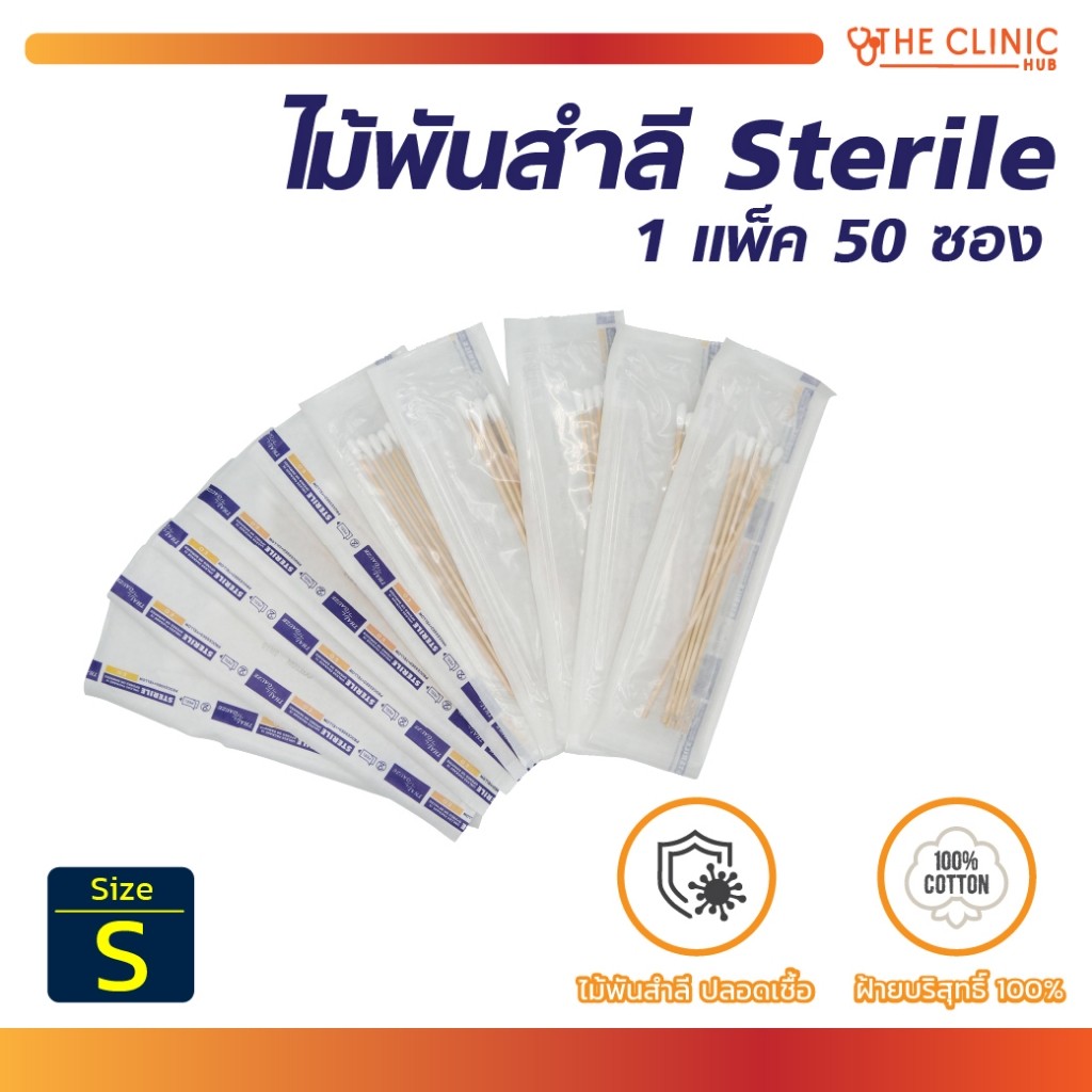 ไม้พันสำลี Sterile ไม้พันสำลีปลอดเชื้อ ไม้พันสำลีสเตอร์ไรด์ ไซส์ S M L สำหรับทำแผลที่ต้องการความปลอดเชื้อสเตอร์ไรด์สูง