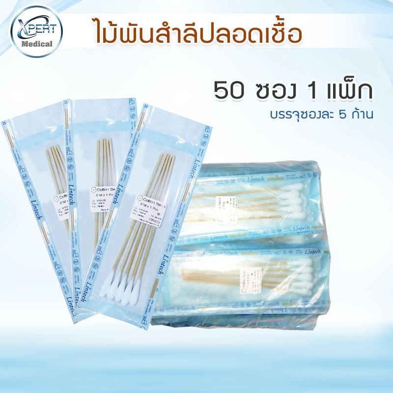 ไม้พันสำลี ไม้พันสำลีปลอดเชื้อ เหมาะสำหรับทำความสะอาดแผล (1 แพ็ค 50 ชิ้น) [ CLINIC HUB ]