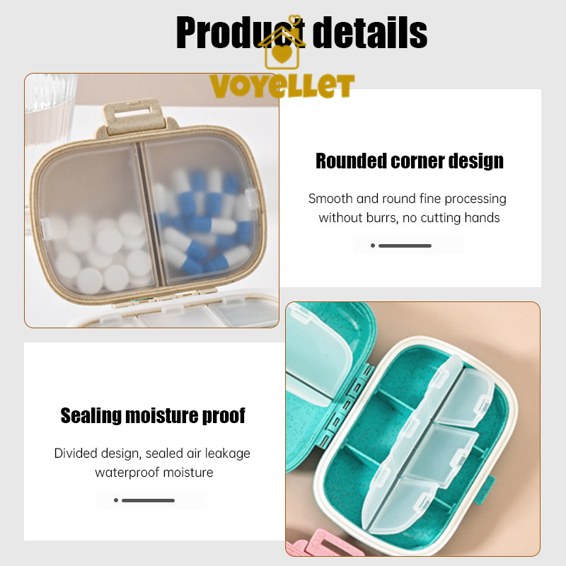 🌈กล่องยา 1 กล่องพกพาขนาดเล็ก 8 ช่องพร้อมยางปิดผนึกกล่องเก็บยาพลาสติกทนทานสำหรับการใช้งานประจำวันและการเดินทาง🌈