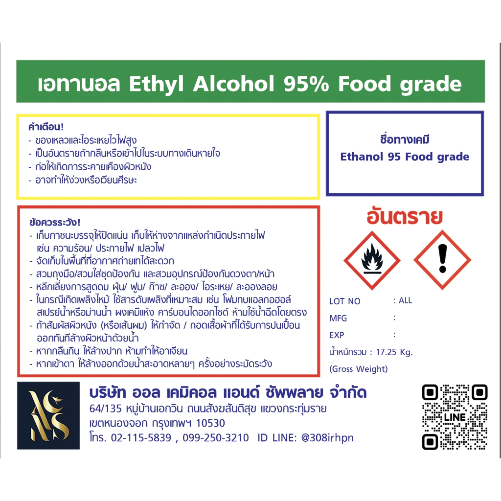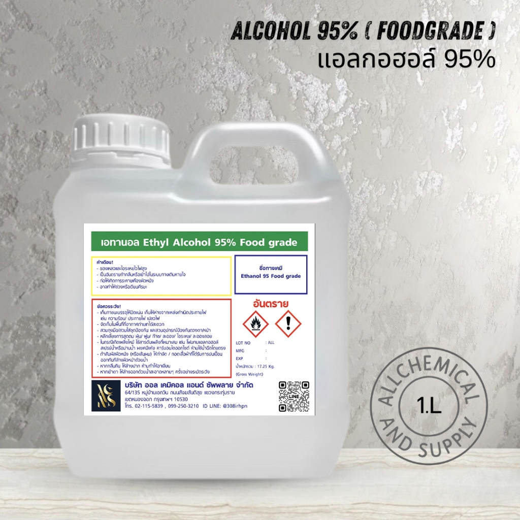 แอลกอฮอล์ 95% ฟู้ดเกรด | 1 ลิตร สำหรับสกัดสมุนไพร, งานการแพทย์, สกินแคร์, ผลิตน้ำหอม และงานอุตสาหกรรมทั่วไป