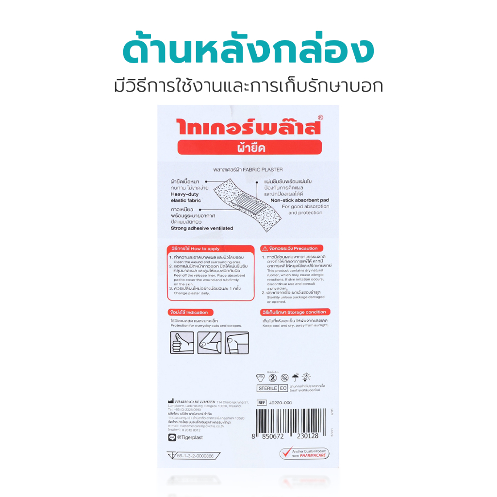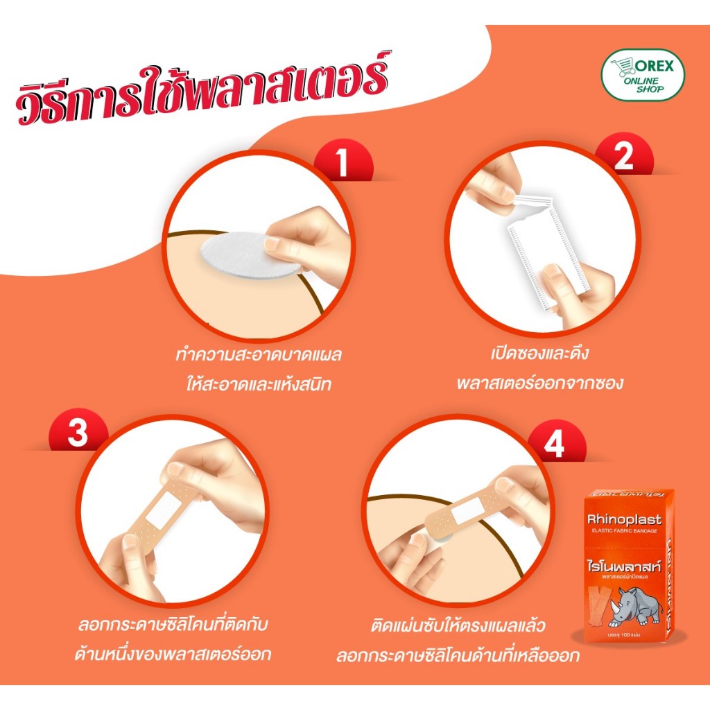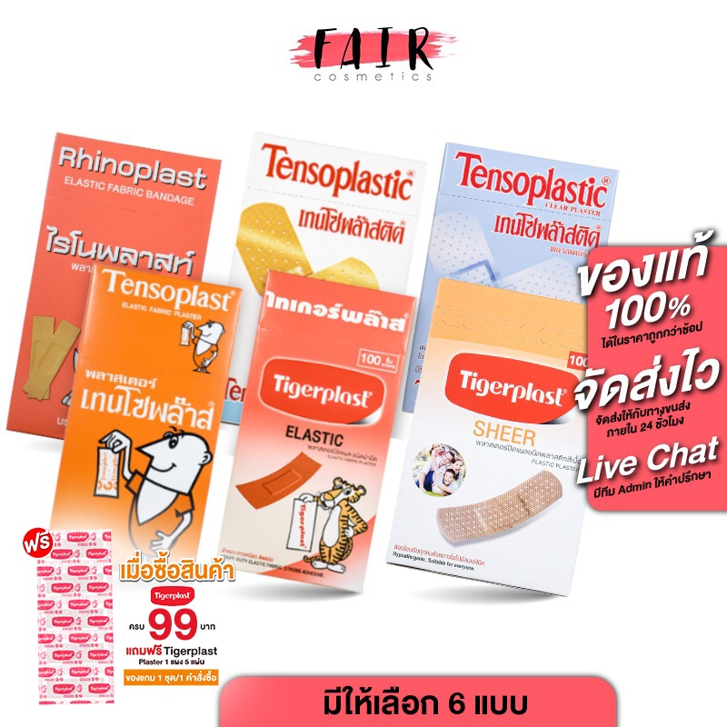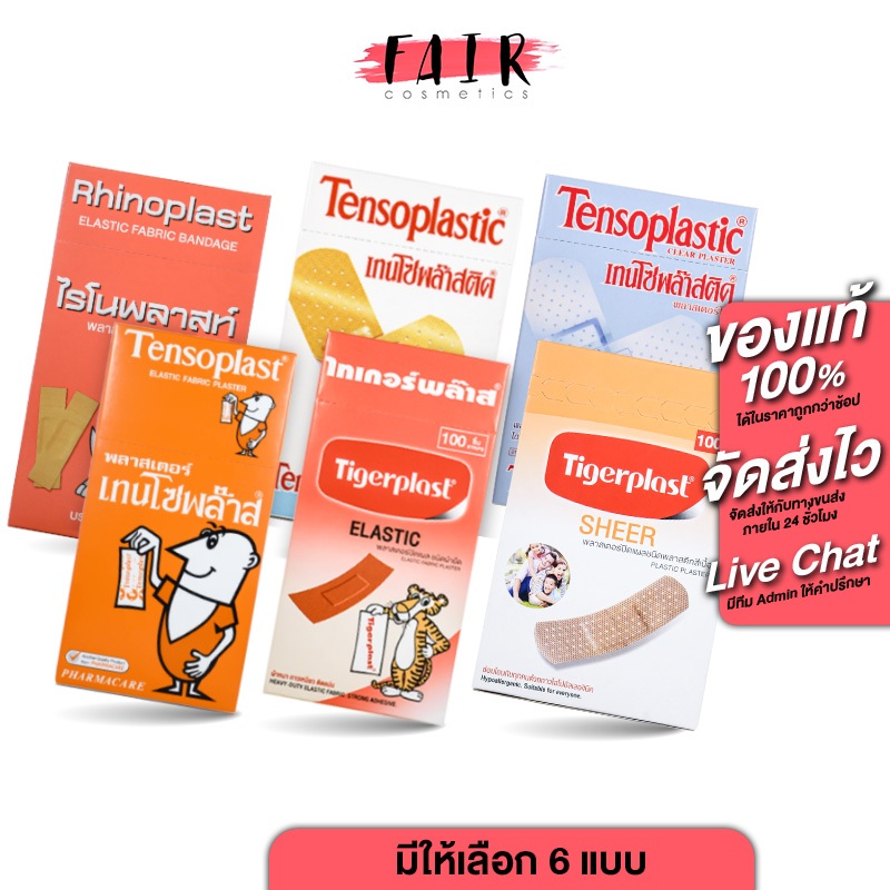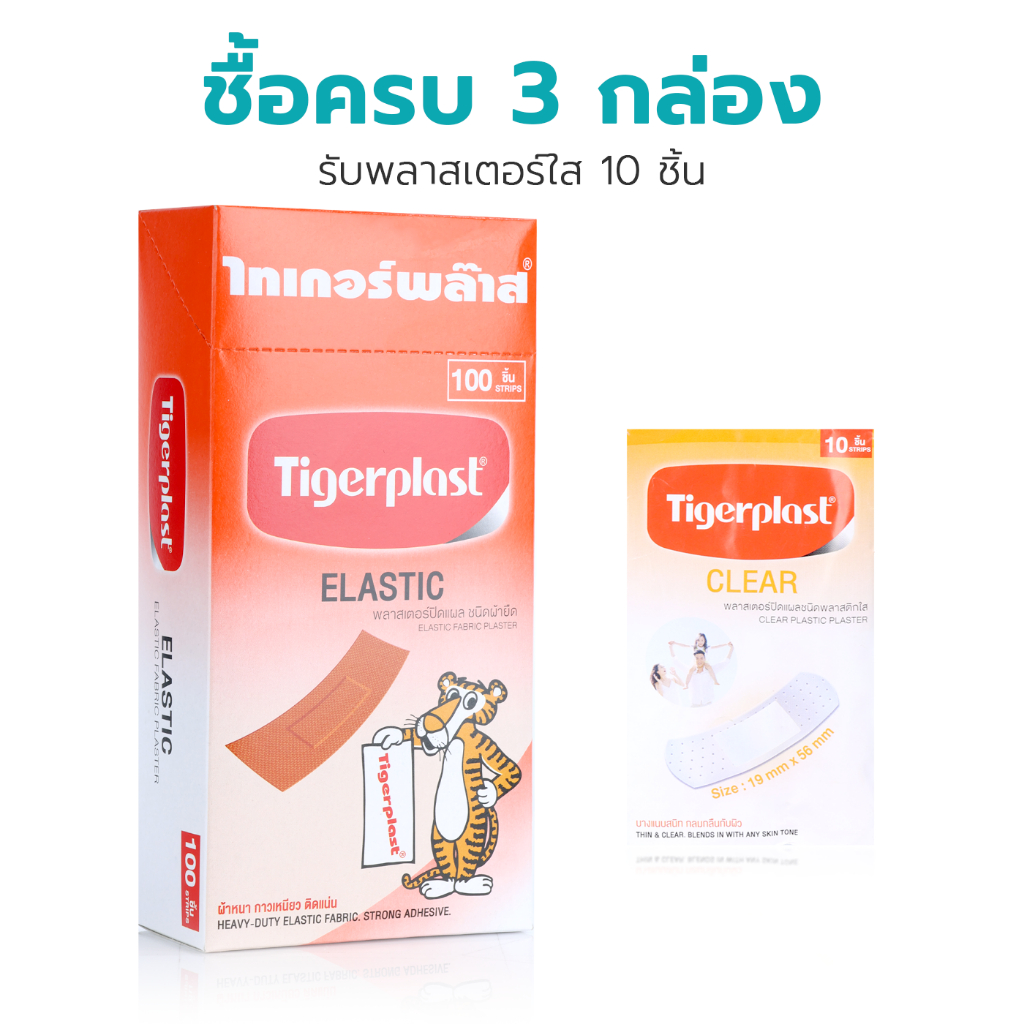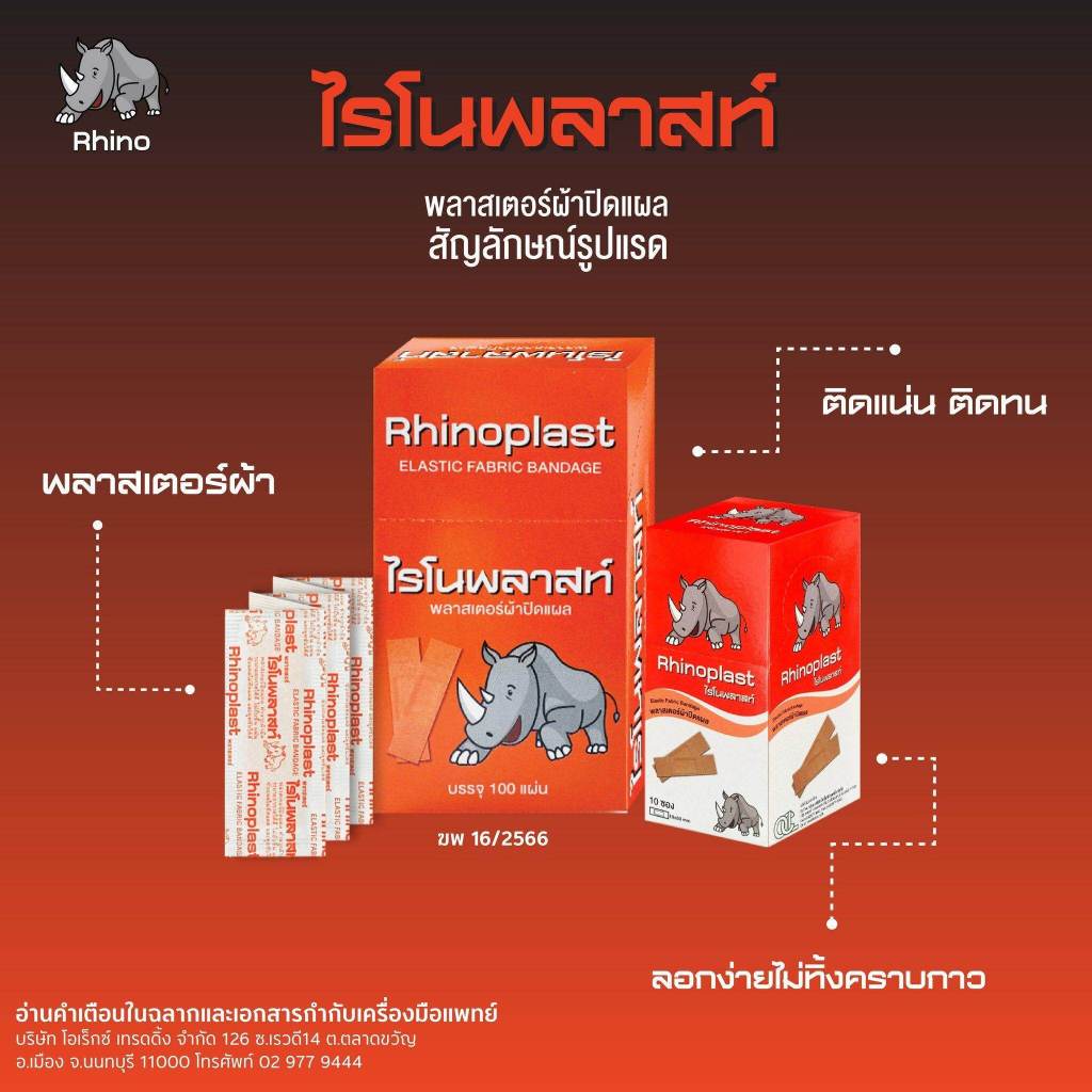 Rhinoplast/Tigerplast Elastic Fabric Bandage ไรโนพลาสท์/ไทเกอร์พลาส พลาสเตอร์ปิดแผล [100 แผ่น] พลาสเตอร์ พลาสเตอร์ยา