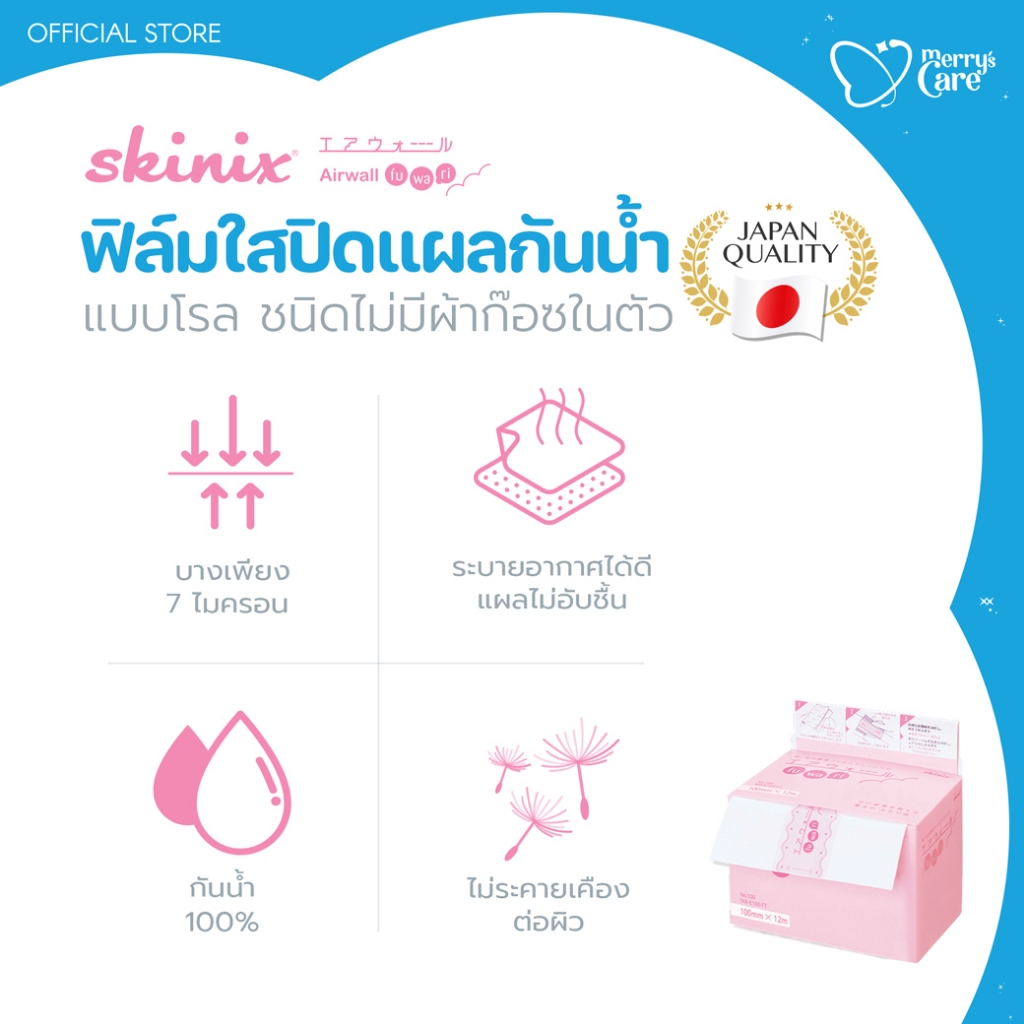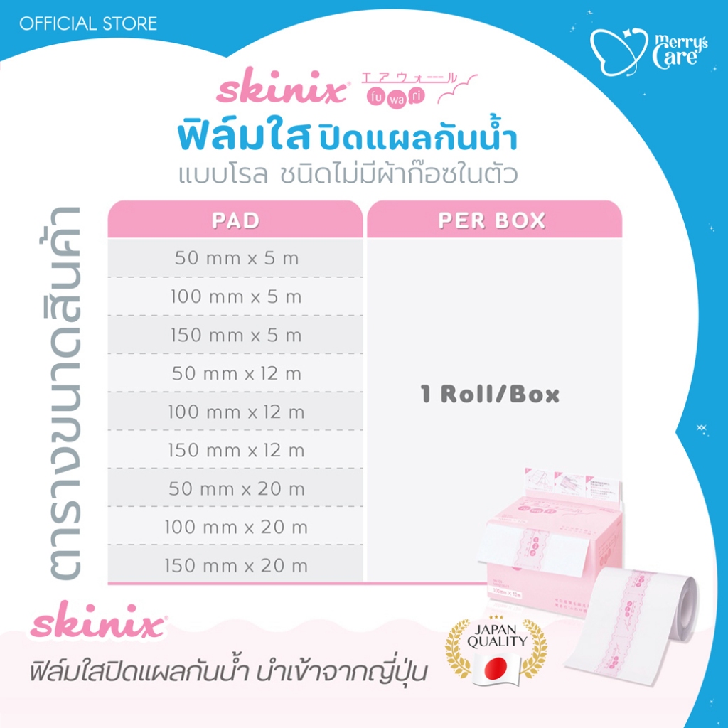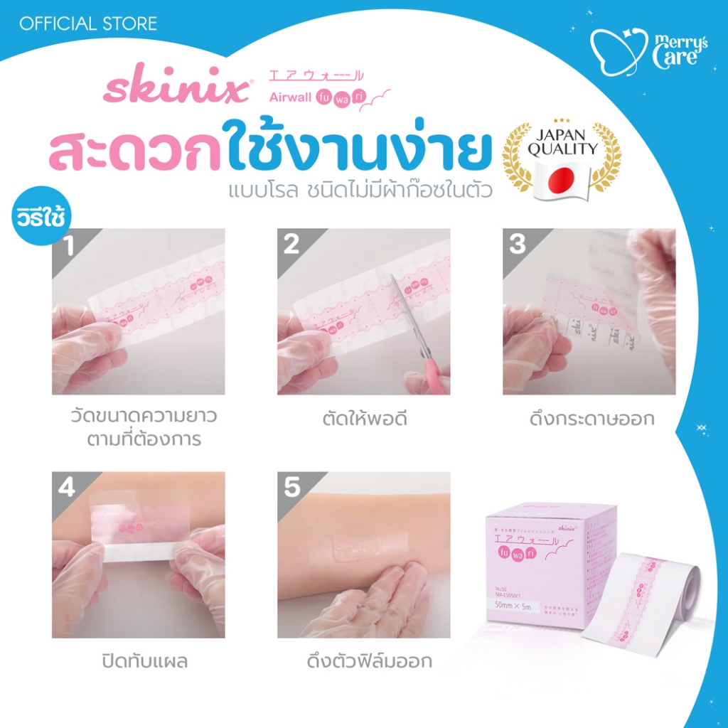 Skinix Airwall Fuwari Roll ฟิล์มปิดแผลกันน้ำ บางใส ติดแน่น ลอกไม่เจ็บ ความยาว 5 เมตร | Exp. 11/27