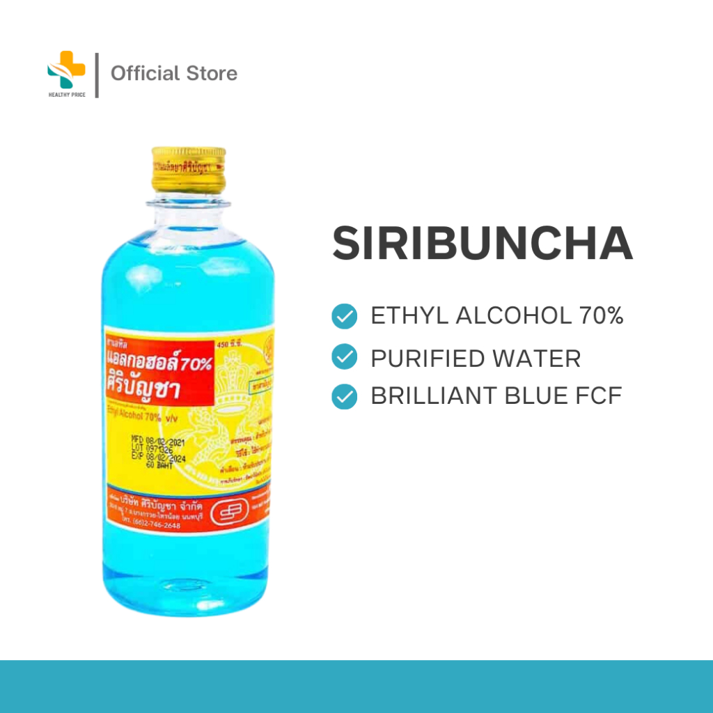 Siribuncha ศิริบัญชาแอลกอฮอล์ 70% (60, 180, 450 ml) แอลกอฮอล์ใช้ทำความสะอาดฆ่าเชื้อโรค