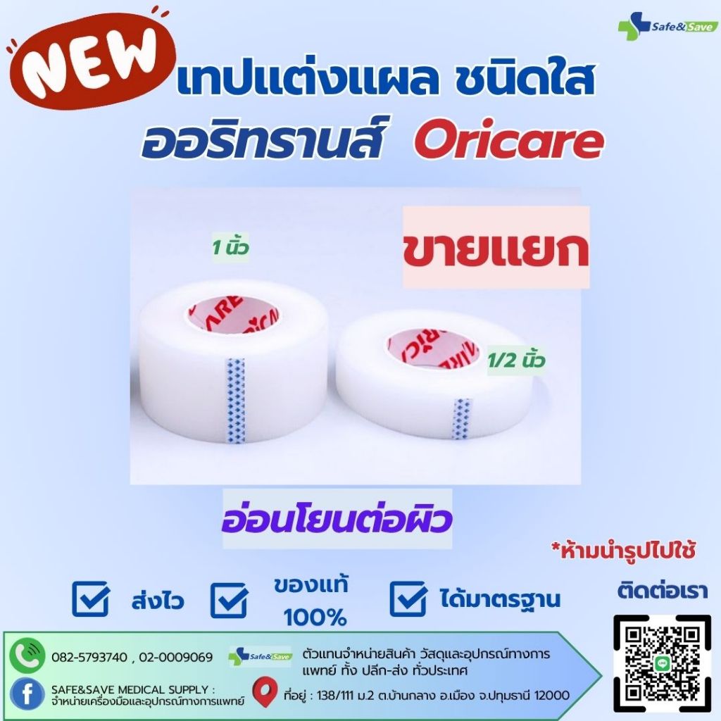 Oritrans ออริทรานส์ เทปแต่งแผล ชนิดใส ยี่ห้อ Oricare อ่อนโยนต่อผิว 1/2นิ้ว 1นิ้ว ขายแยก