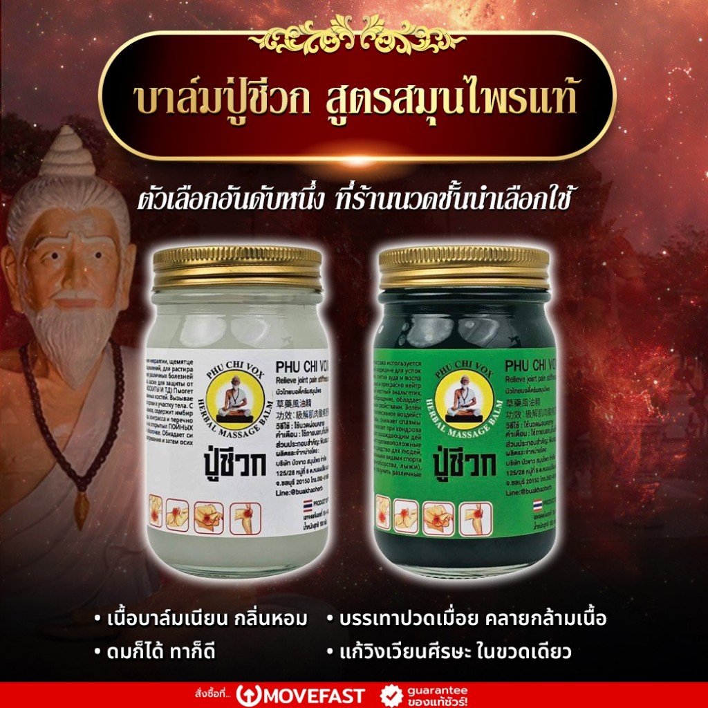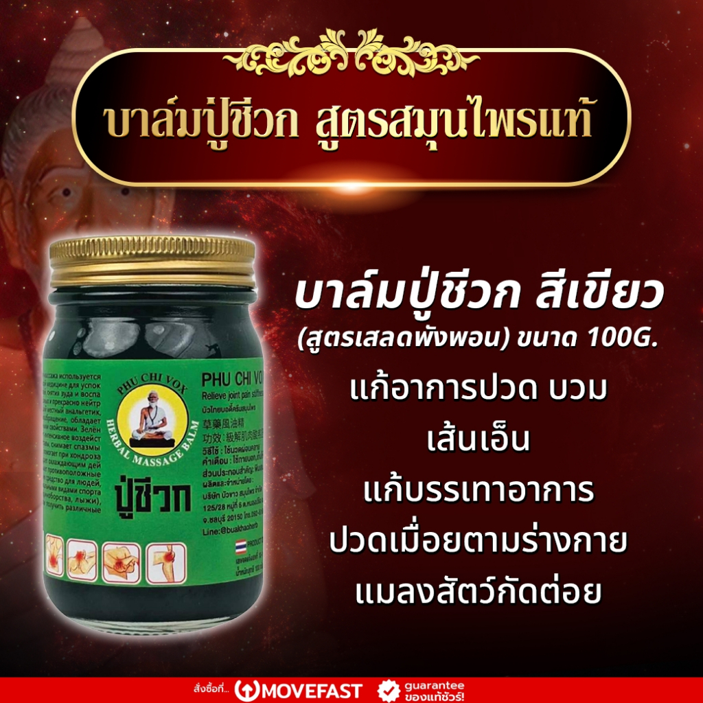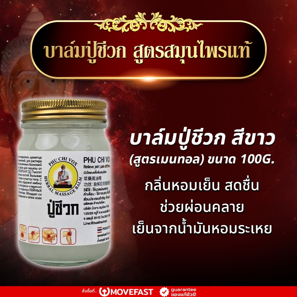 Pa mu – บาล์มปู่ชีวก สูตรสีเขียว สีขาว หอมสดชื่น ผ่อนคลาย วิงเวียน 100 กรัม