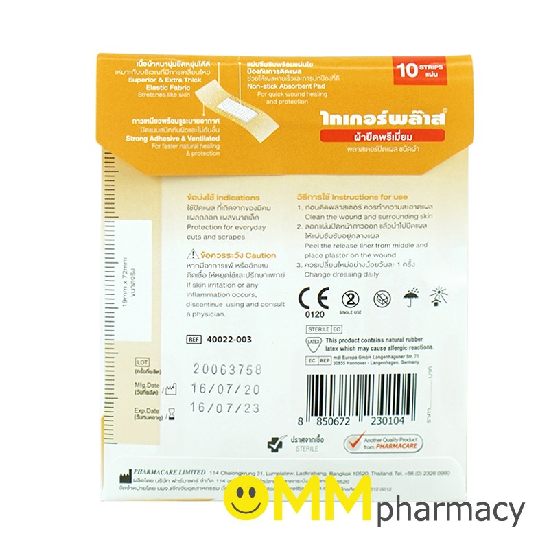 Tigerplast ไทเกอร์พล๊าส ชนิดผ้า พลาสเตอร์ปิดแผล แบ่งขาย 20 ชิ้น / 50 ชิ้น