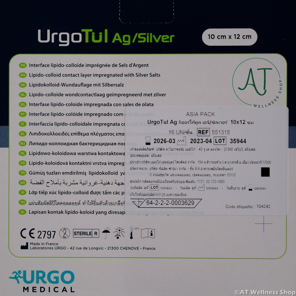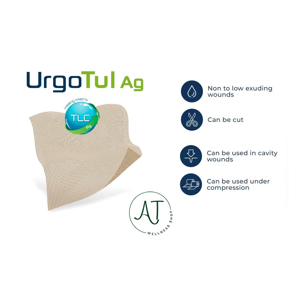 UrgoTul Ag/Silver (ซองเขียว) แผ่นตาข่ายรองแผลมี Ag ฆ่าเชื้อ (ราคาต่อ 1 แผ่น)(Price per 1 sheet)