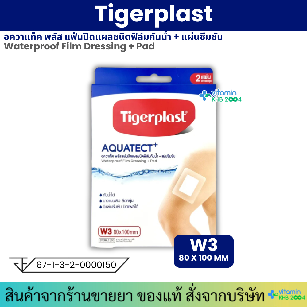 Tigerplast Aquatect+ อควาเท็ค พลัส แผ่นปิดแผลชนิดฟิล์มกันน้ำ + แผ่นซึมซับ รุ่น W3,W4
