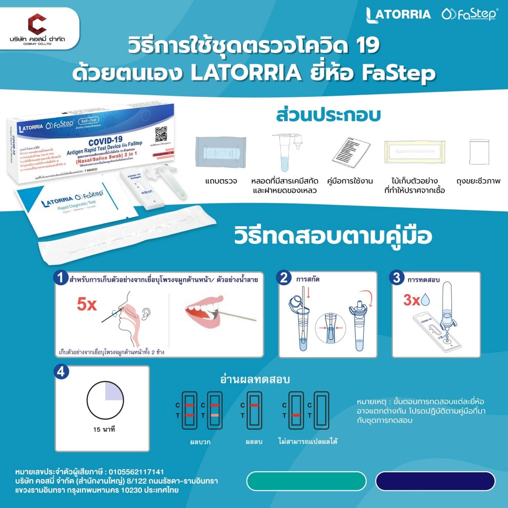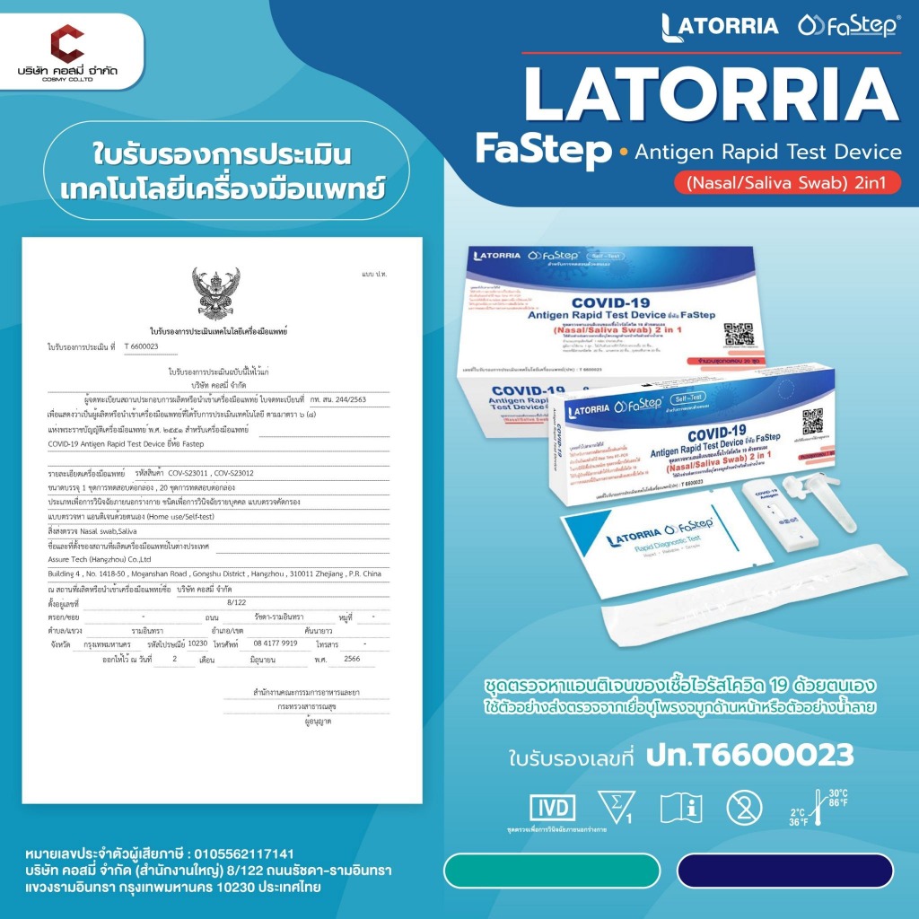 [10 กล่อง] Latorria FaStep 2in1 ATK Covid-19 [Nasal/Saliva Swab] ชุดตรวจโควิด แบบก้านยาว