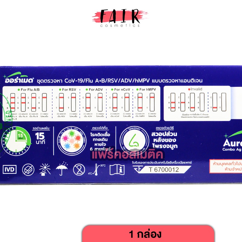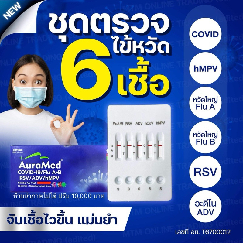 [ชุดตรวจ 6in1] AuraMed 6in1 Covid19/Flu A+B/RSV/ADV/hMPV ออร่าเมด ชุดตรวจโควิด, ไข้หวัดใหญ่ A/B, อาร์เอชวี,อะดีโน