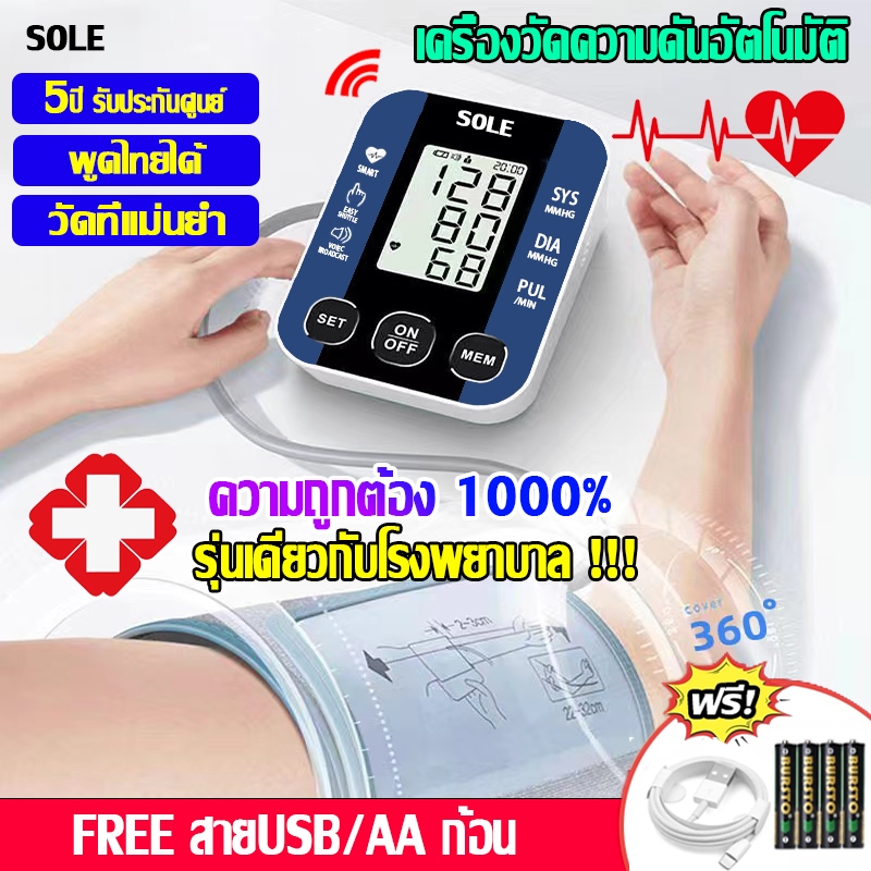 10ปีรับประกันSOLE เครื่องวัดความดัน เสียงภาษาไทย เครื่องวัดดัน เครืีองวัดความดัน ชาร์จUSB จอใหญ่HD โลหิตต้นแขน พร้อมส่ง