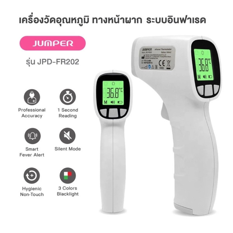 Non-Touch Infrared Thermometer เครื่องวัดอุณหภูมิที่หน้าผากแบบอินฟราเรด JPD-FR202 [รับประกันคุณภาพ 1 ปี] Jumper