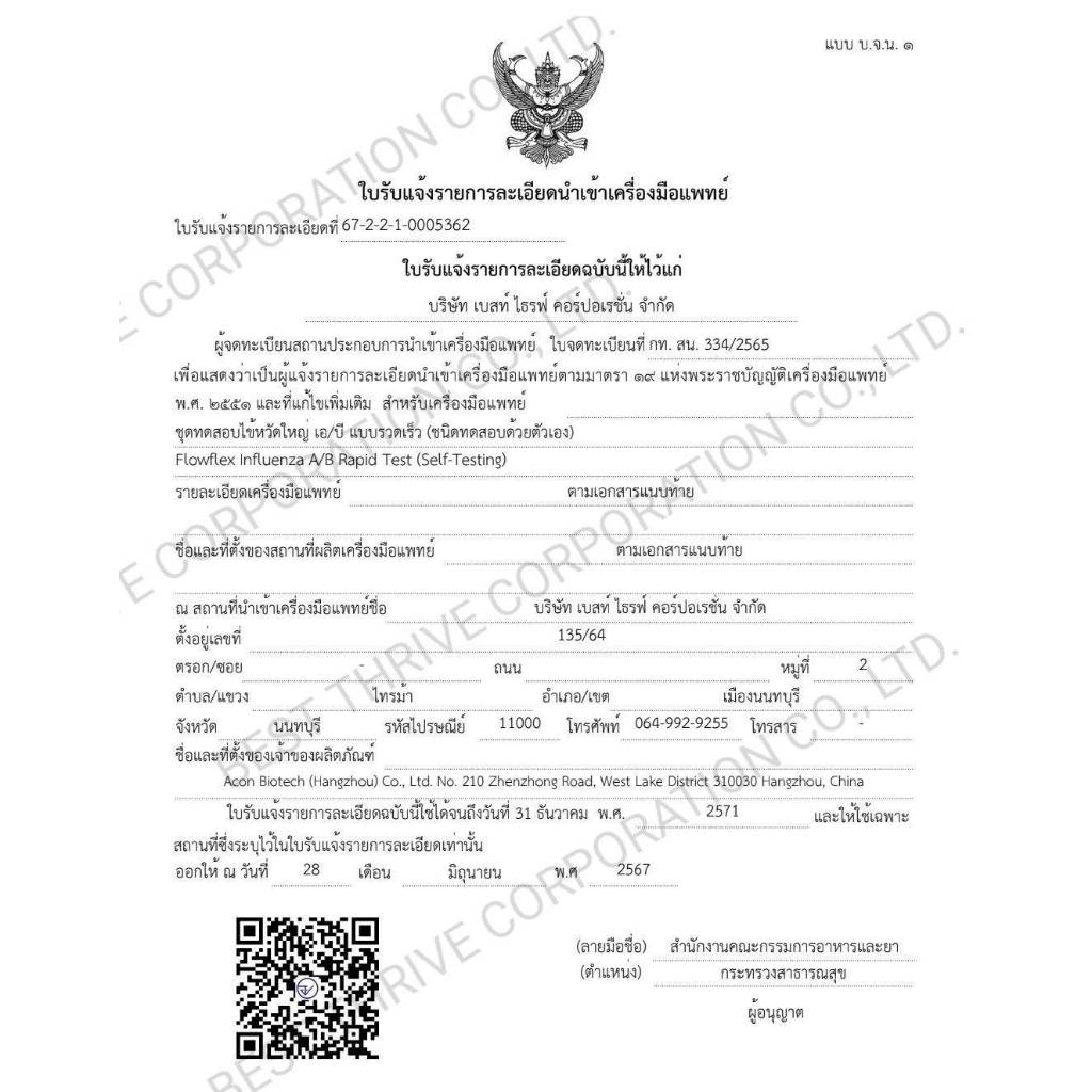 Flowflex ชุดตรวจไข้หวัดใหญ่สายพันธุ์เอ/บี Influenza A/B Rapid Test SET10, 20 TEST