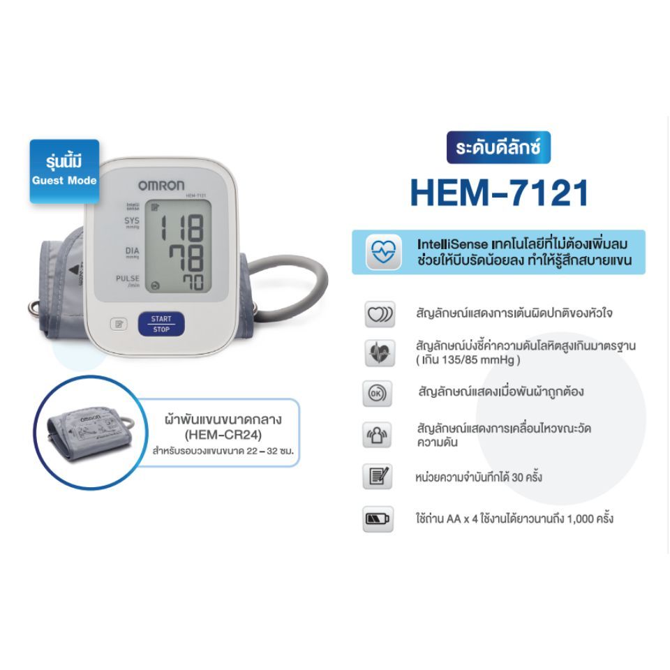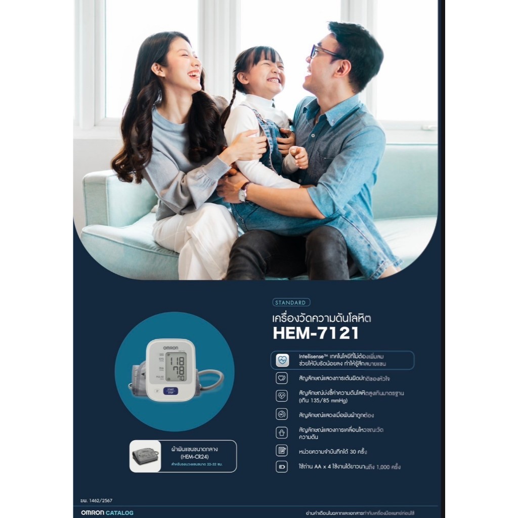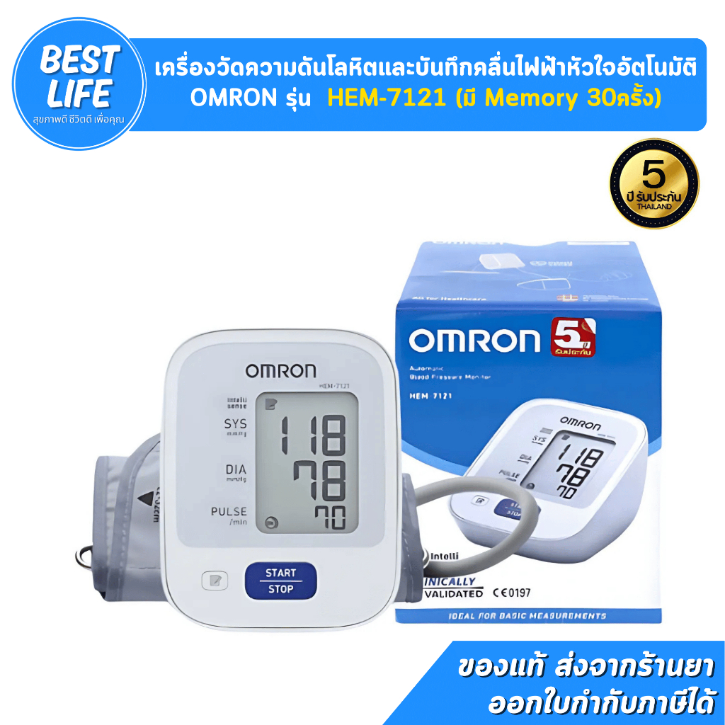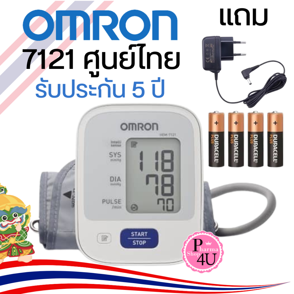 OMRON เครื่องวัดความดัน HEM-7121 แถม Adapter รับประกันศูนย์ 5 ปี (Cuff22-32cm) #8566
