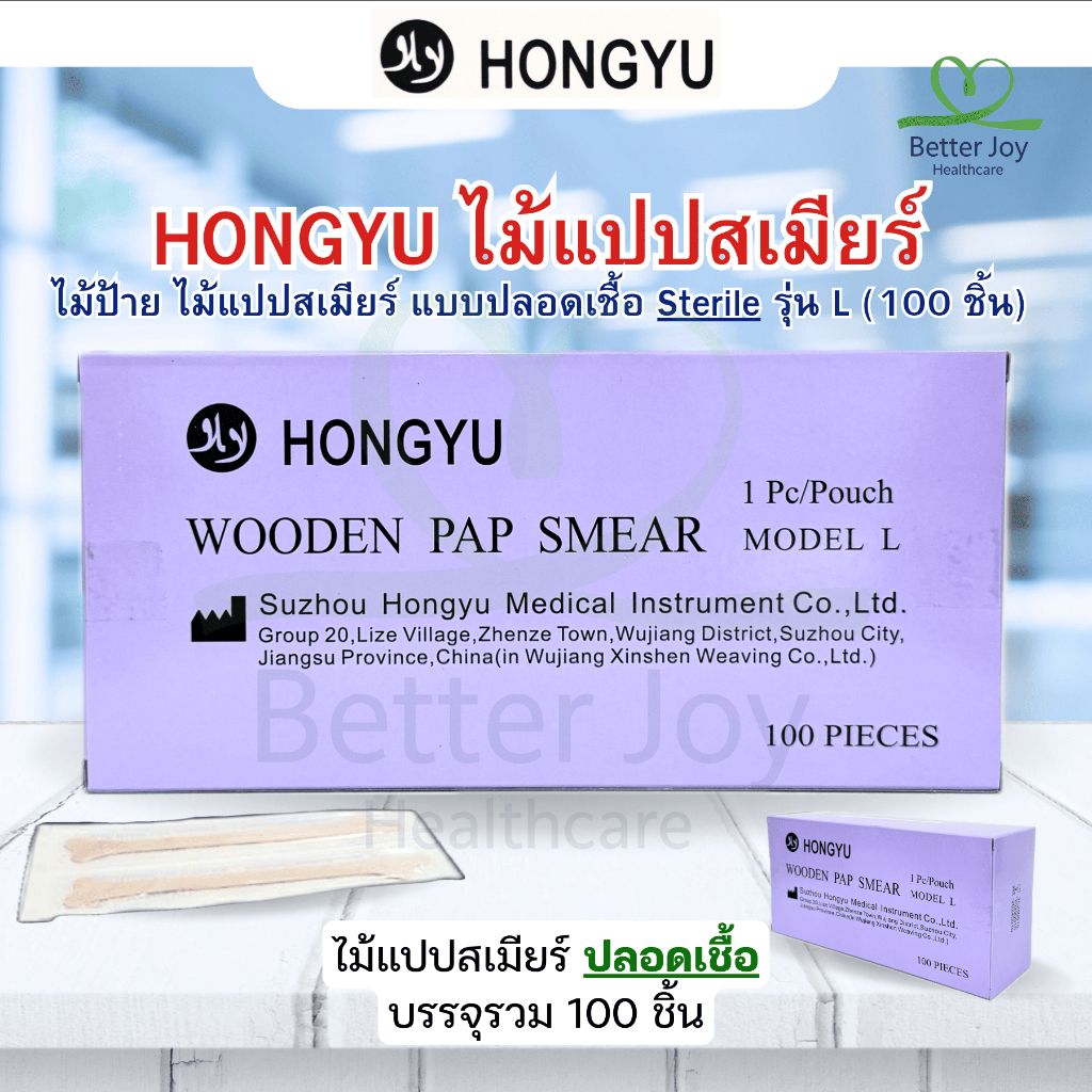 Pap Smear ยี่ห้อ HONGYU ไม้ป้ายคัดกรอง ไม้แปปสเมียร์ แบบปลอดเชื้อ Sterile รุ่น L (100 ชิ้น)