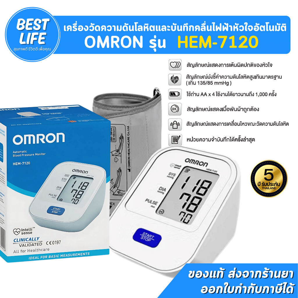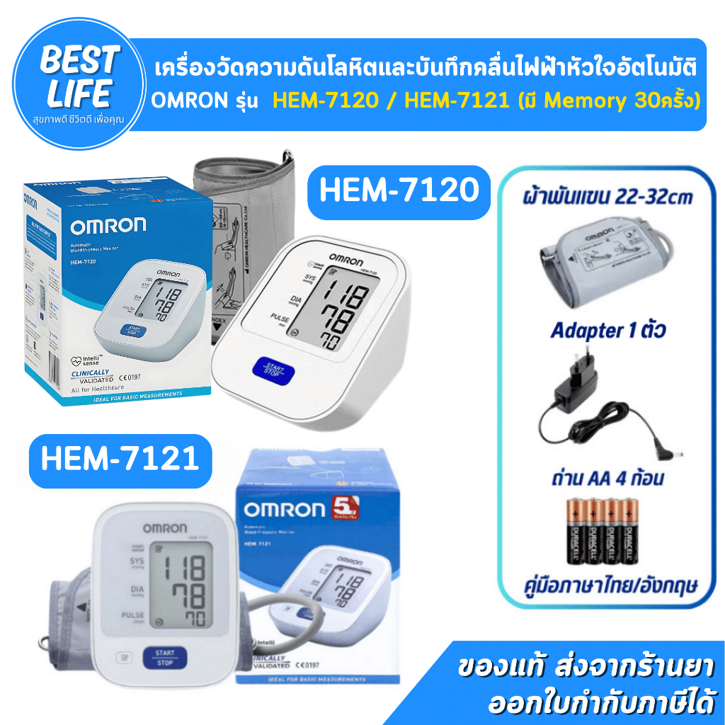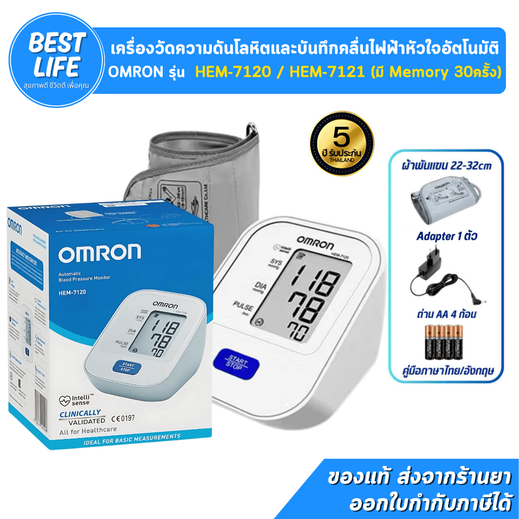 Omron รุ่น HEM-7120 / 7121 แถมฟรี Adapter เครื่องวัดความดัน [รับประกันศูนย์ไทย 5 ปี]