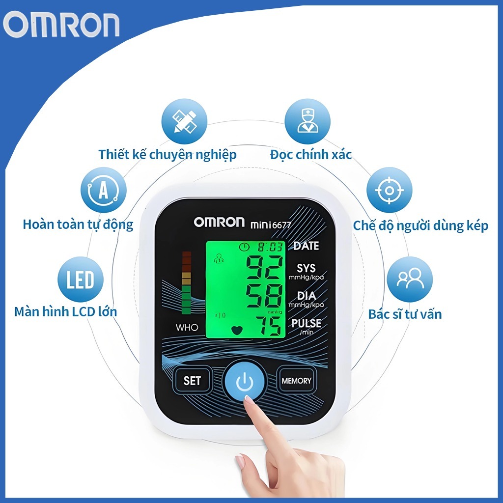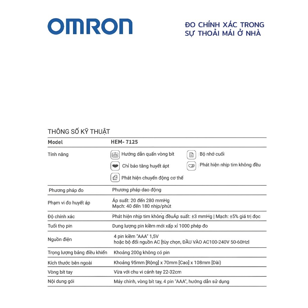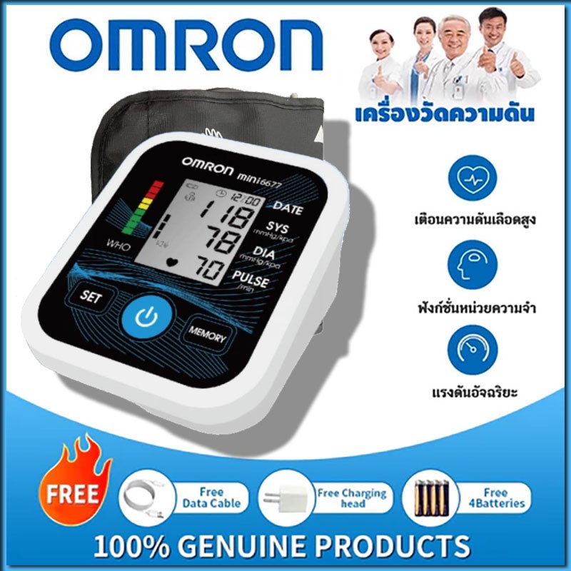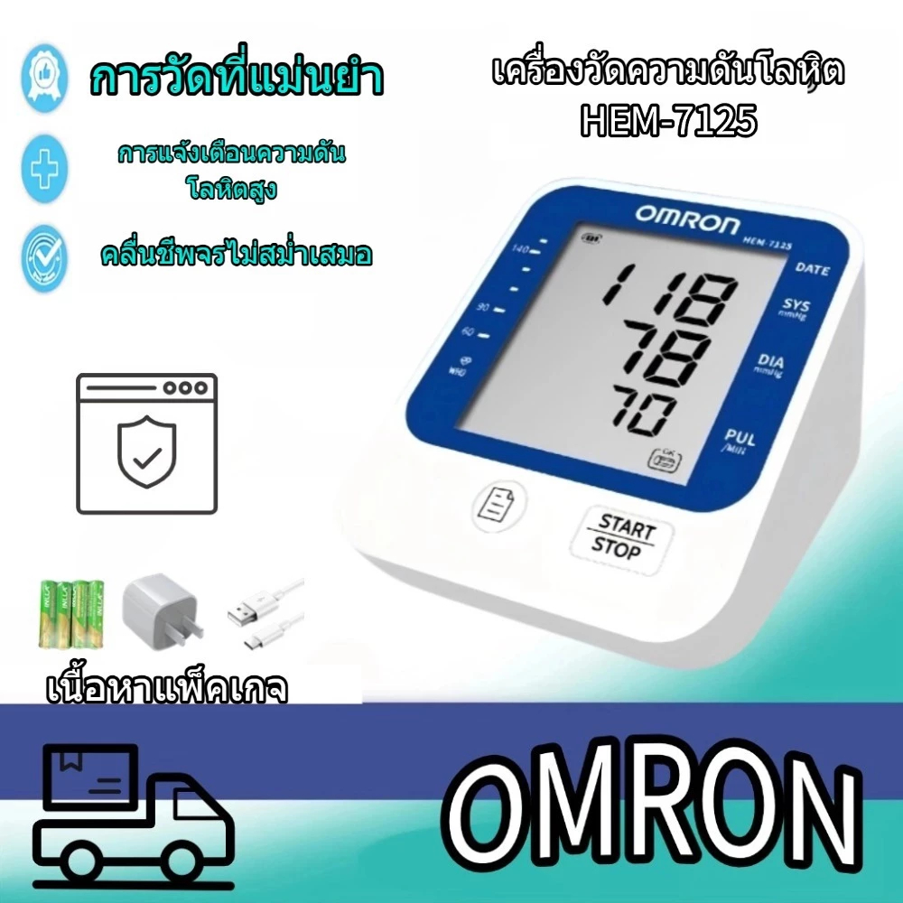 เครื่องวัดความดันโลหิตอัตโนมัติเต็มรูปแบบ HEM-7125 พร้อมเครื่องชาร์จและแบตเตอรี่ จอแสดงผล HD