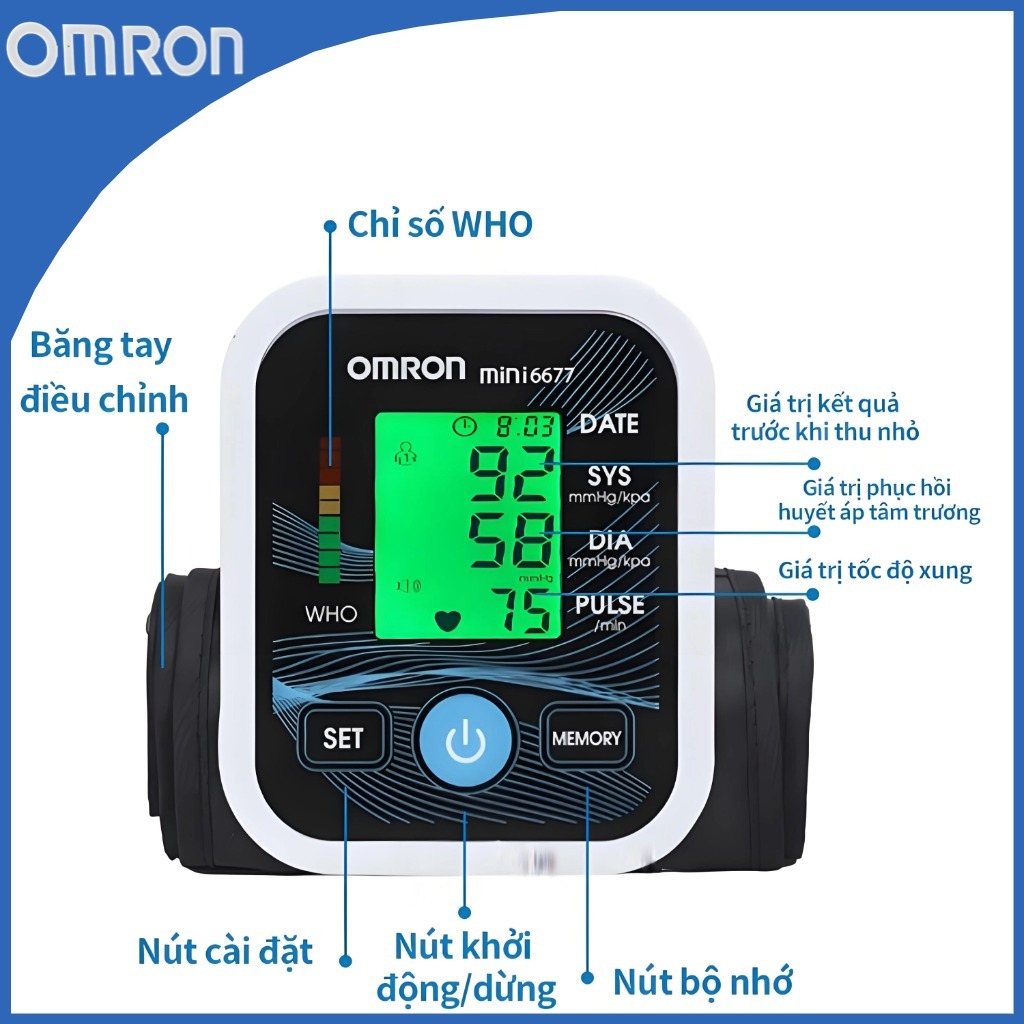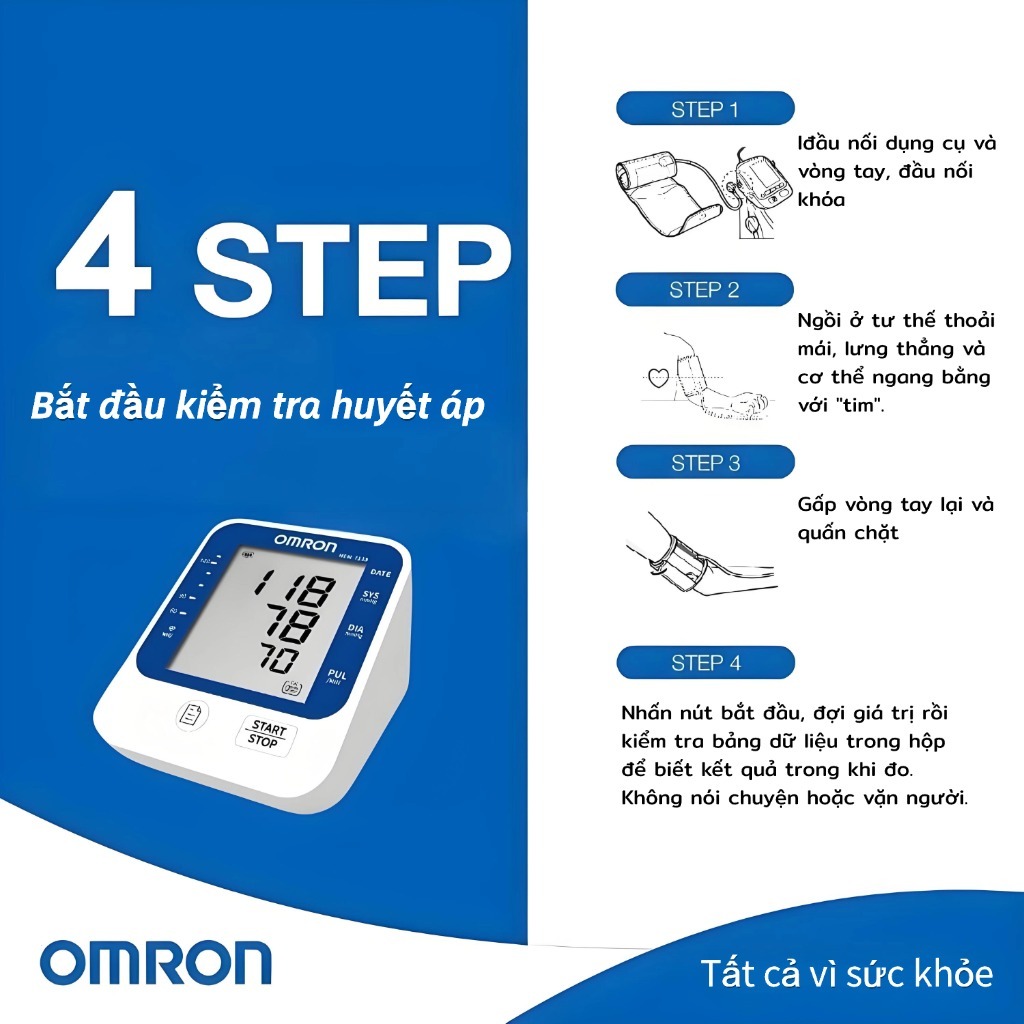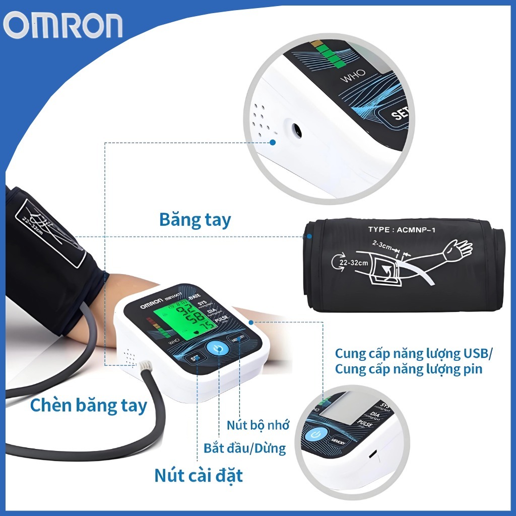 เครื่องวัดความดันโลหิตอัตโนมัติเต็มรูปแบบ HEM-7125 พร้อมเครื่องชาร์จและแบตเตอรี่ จอแสดงผล HD