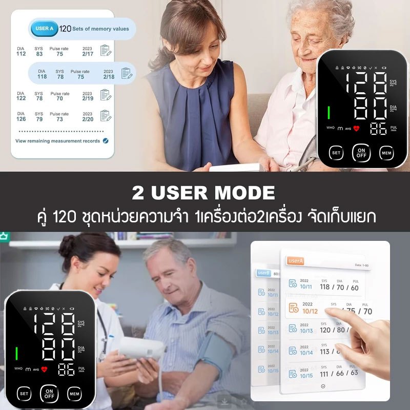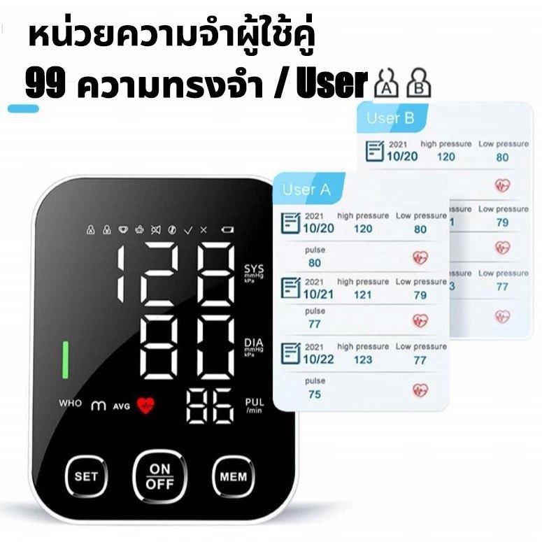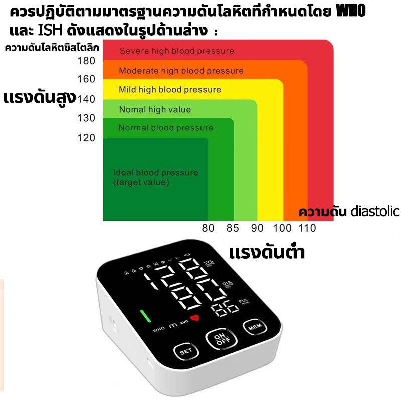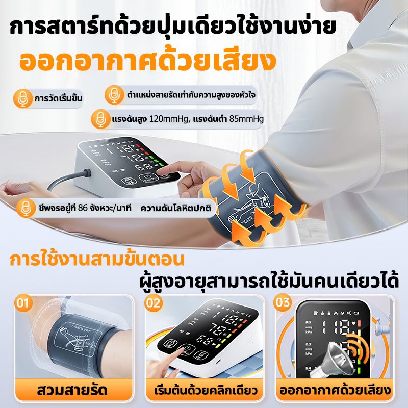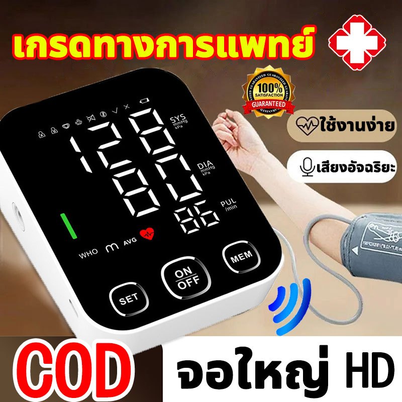 เครื่องวัดความดันโลหิต อัตโนมัติ เครื่องวัดความดันแบบพกพา หน้าจอดิจิตอล มัลติฟังก์ชัน มีเสียงภาษาไทย