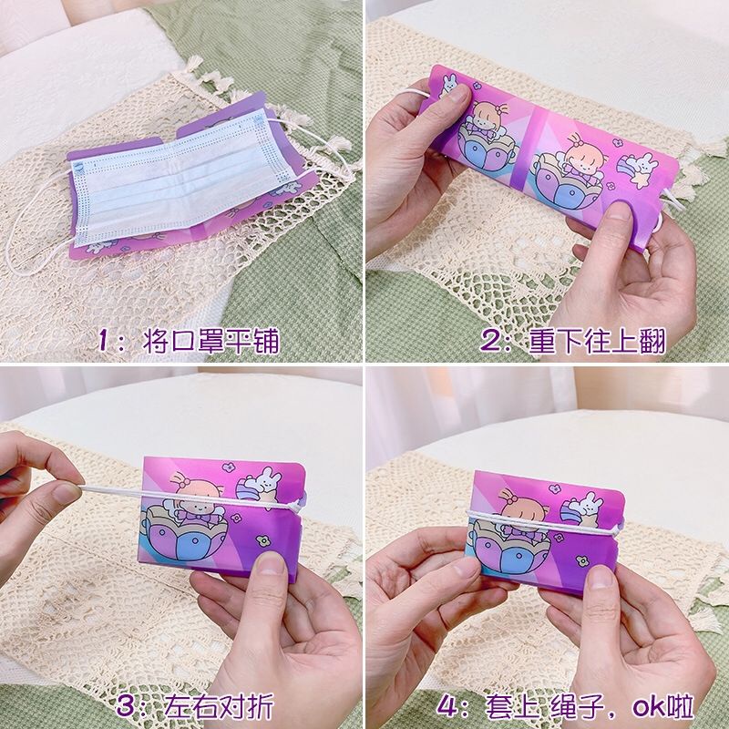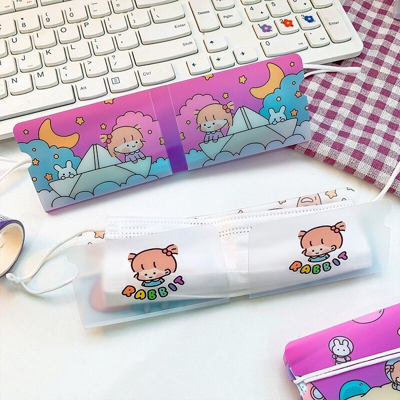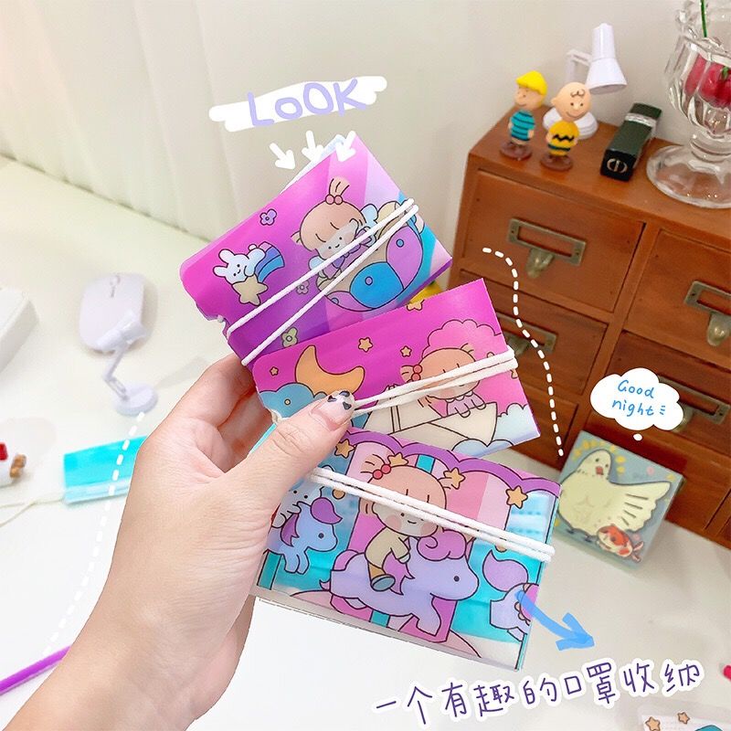(พร้อมส่ง) ที่เก็บแมส แบบพกพา ใช้ง่ายสะดวก แบบพับ ลายหมีน่ารัก