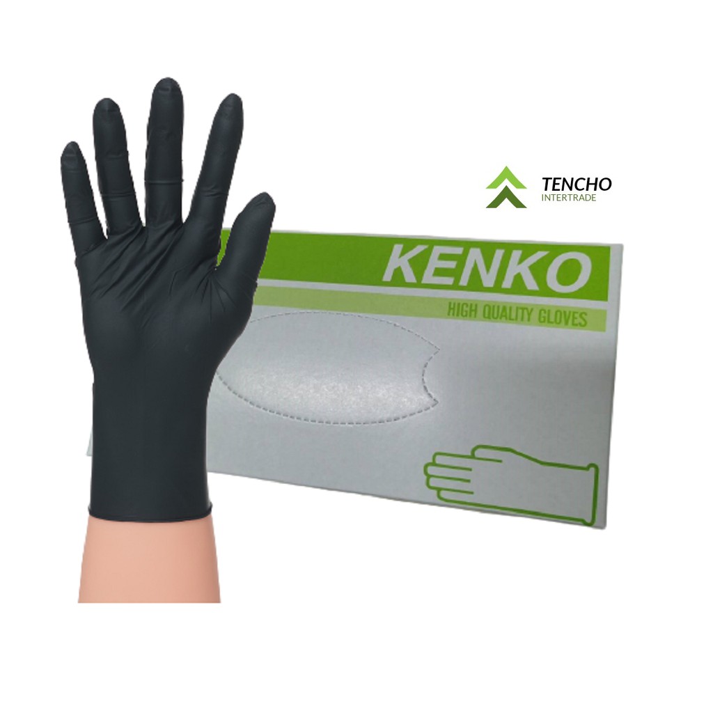 (ส่งฟรี)ถุงมือยางไนไตรสีดำหนา 5.0 มิล Kenko สีดำ ไม่มีแป้ง ถุงมือยางไนไตรสีดำ 100 ชิ้น