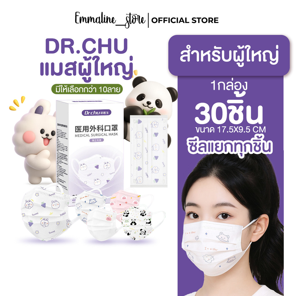 [[ซีลต่อชิ้น]]Dr.chu maskผู้ใหญ่ทรงFlat 30ชิ้น/กล่อง
