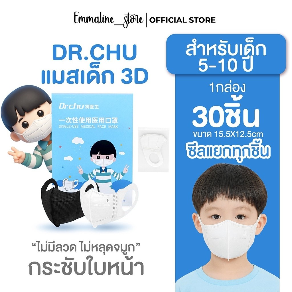 [[ซีลต่อชิ้น]]Dr.chu แมสเด็กหูหนา5-10ปี 1กล่อง30ชิ้น