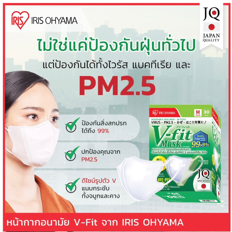 ️‼️พร้อมส่ง‼️Mask หน้าเรียว IRIS Ohyama รุ่น V-Fit หน้ากากอนามัย 3D คุณภาพญี่ปุ่น ป้องกันฝุ่น PM2.5 30 ชิ้น/กล่อง