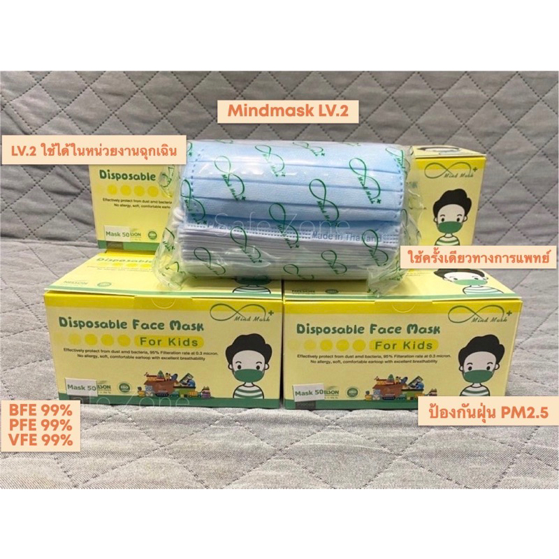 ‼️พร้อมส่ง‼️ หน้ากากอนามัย 3 ชั้นเด็ก 4-11 ปี🔺Mindmask🔺 ผลิตในไทย ทางการแพทย์ ลอตล่าสุด
