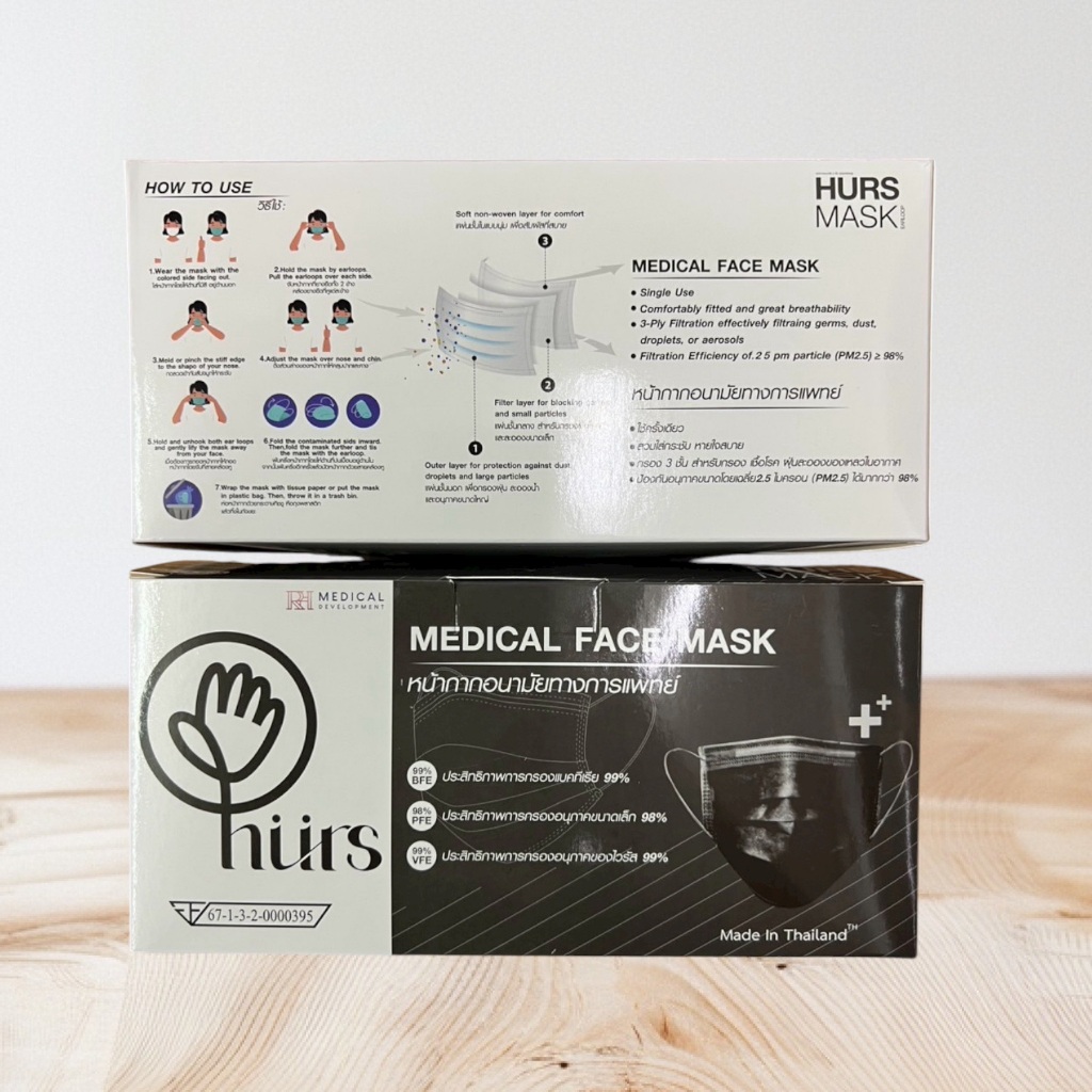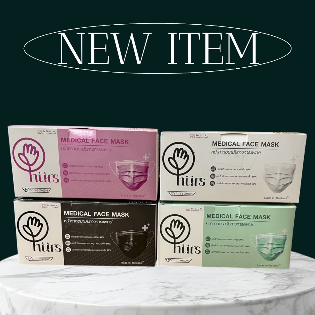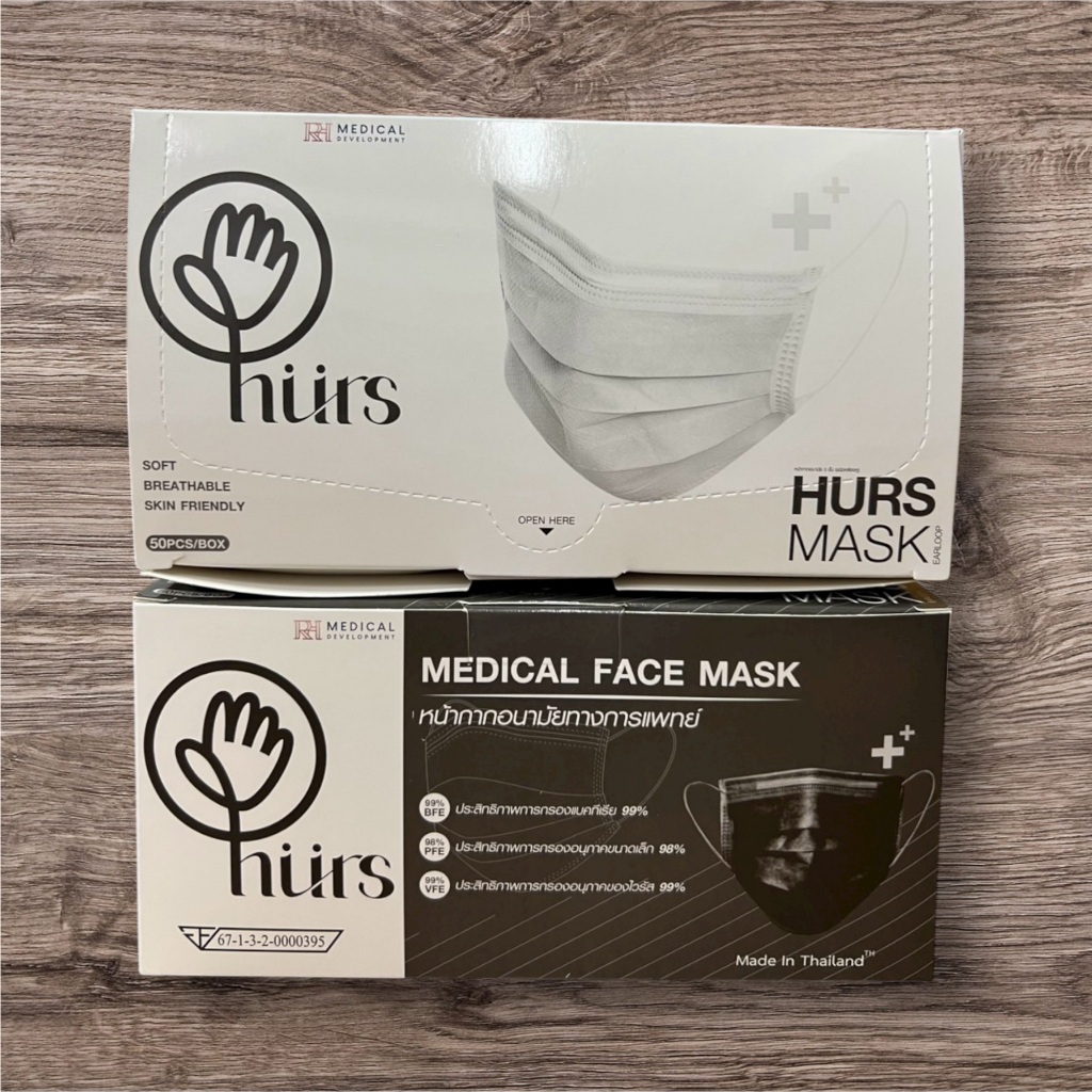 (สีใหม่4สี)แมสไทย Hurs mask หน้ากากอนามัยทางการแพทย์ หน้ากากอนามัยเกรดการแพทย์ อย่างดี หนา 3 ชั้น สายกลม ไม่เจ็บหู