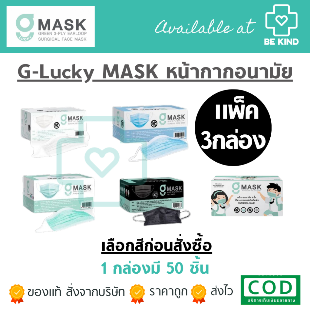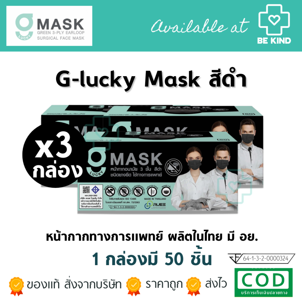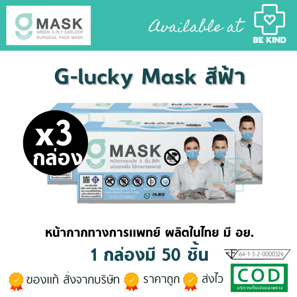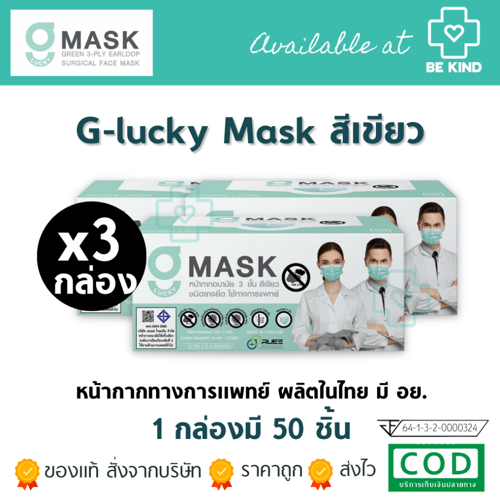 (สีใหม่4สี)แมสไทย Hurs mask หน้ากากอนามัยทางการแพทย์ หน้ากากอนามัยเกรดการแพทย์ อย่างดี หนา 3 ชั้น สายกลม ไม่เจ็บหู
