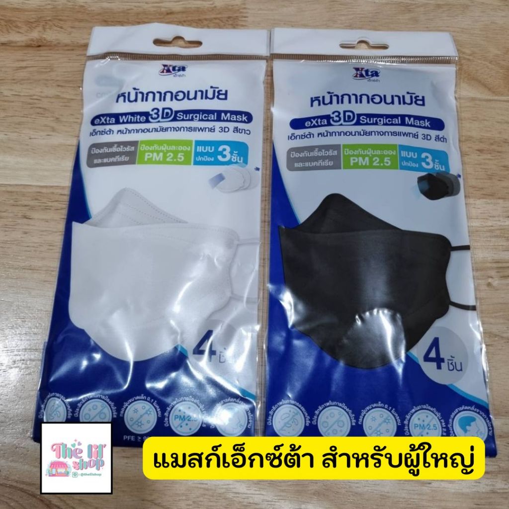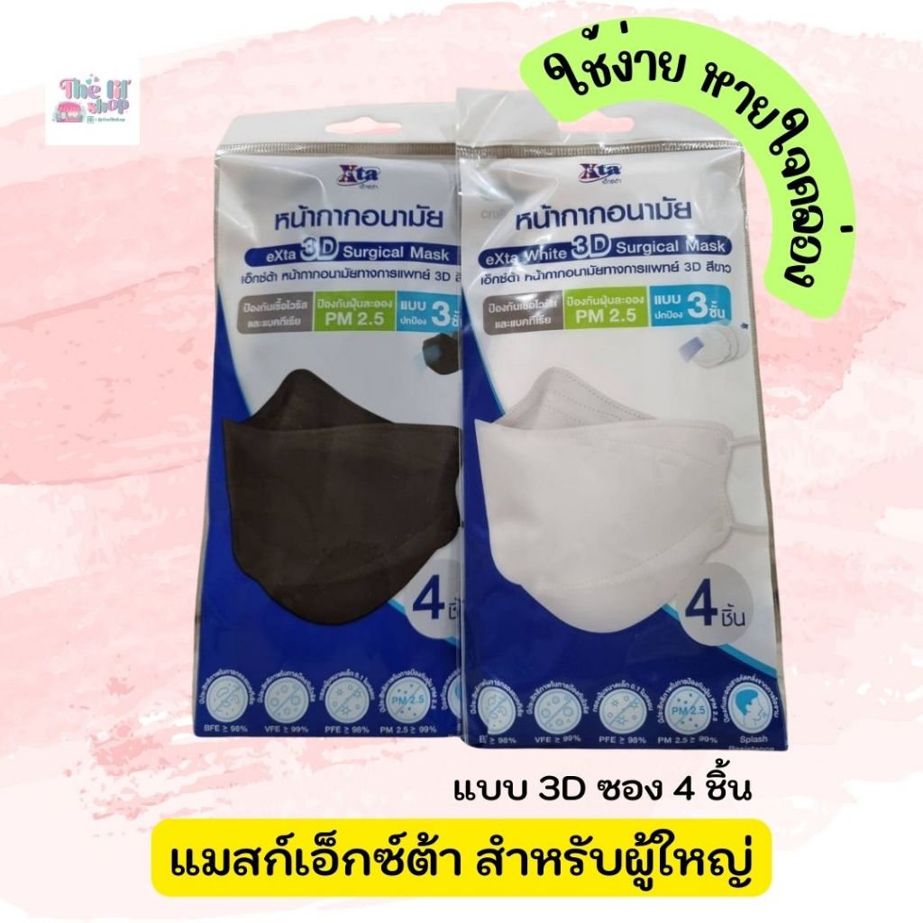 (ของแท้ พร้อมส่ง) หน้ากากอนามัย eXta สำหรับผู้ใหญ่แบบ 3D และปกติ (บรรจุซองละ 4 และ 6 ชิ้น)